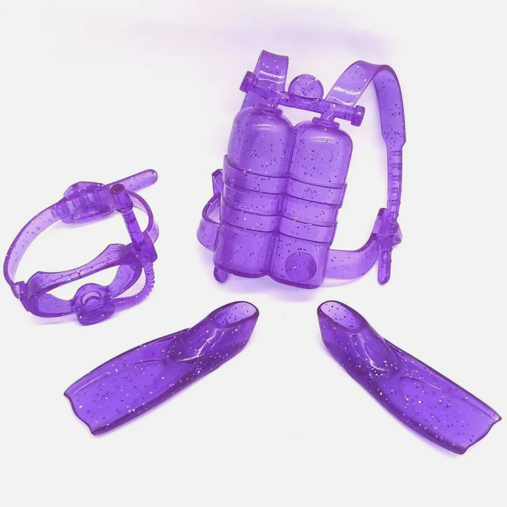 5 x cilindro de oxígeno para muñecas 5 x gafas de buceo para muñecas 5 x par de aletas para muñecas