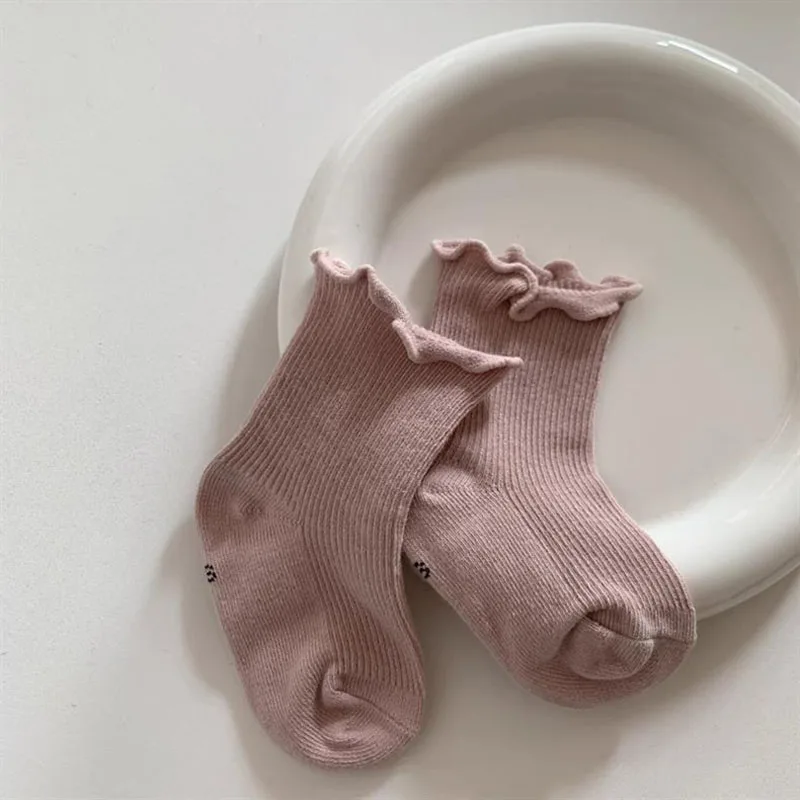 Comprar 5 par/lote calcetines coreanos acampanados para niñas calcetines lindos de algodón sólidos para niños en calcetines cortos de tubo