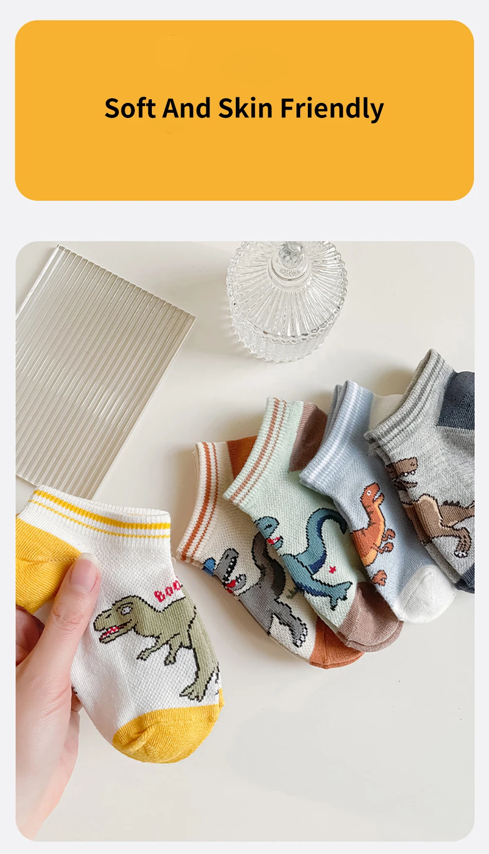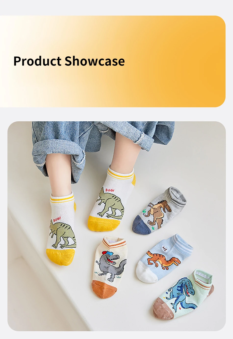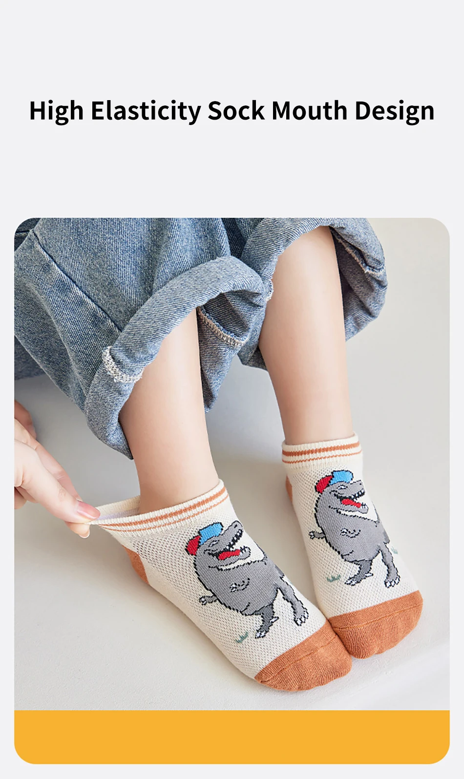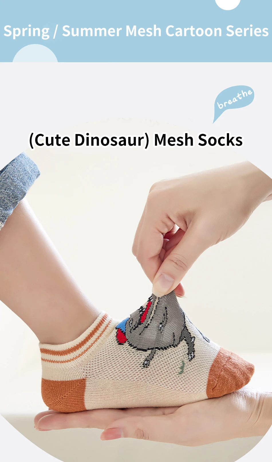 Nombre: 5 pares de calcetines finos y transpirables de dibujos animados de dinosaurios para niños, adecuados para primavera y verano, malla para clima fresco, diseño cómodo máximo