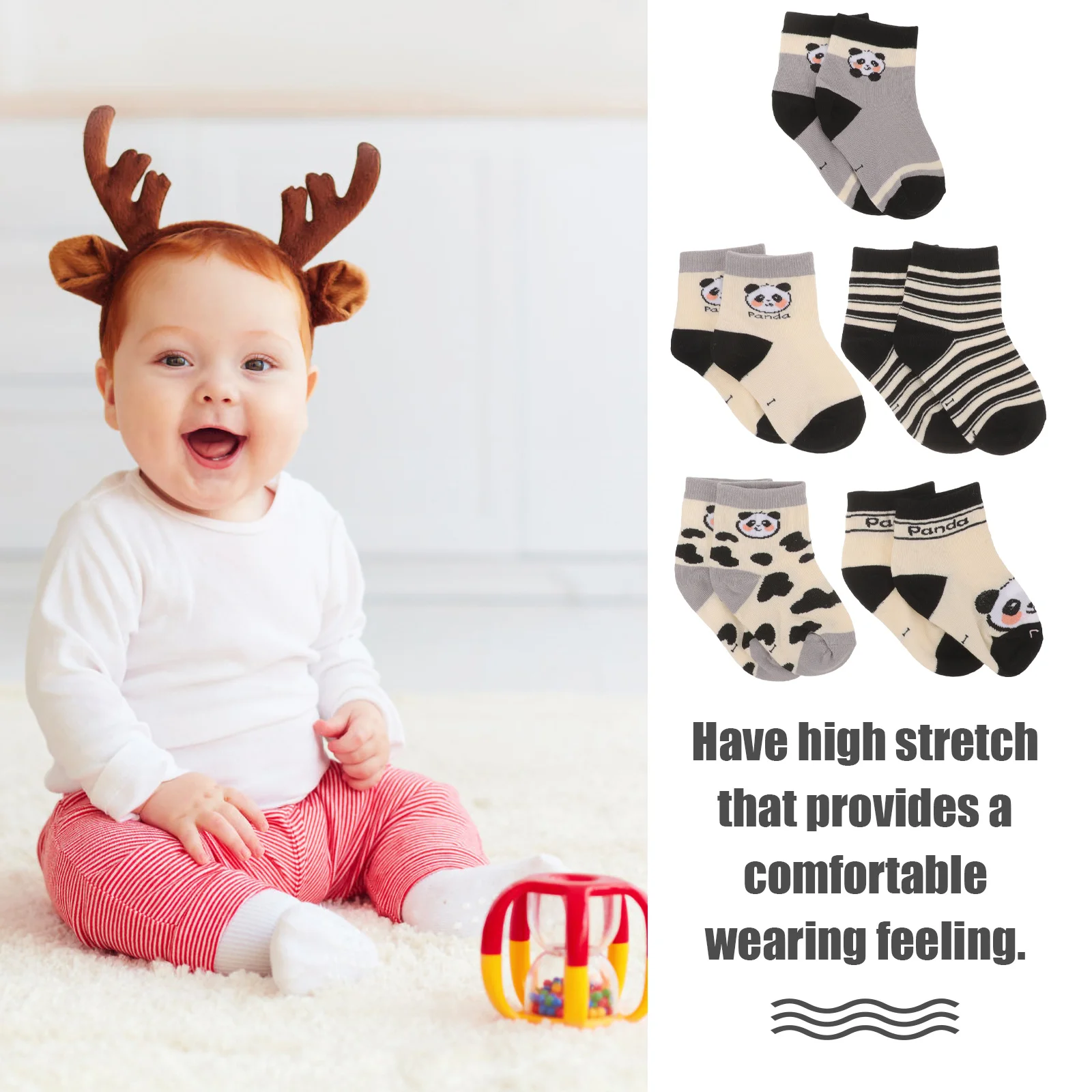 - Tecnología: los calcetines de forma cilíndrica con diseño elástico garantizan una sensación de uso cómoda para niños pequeños y recién nacidos durante todo el día.
