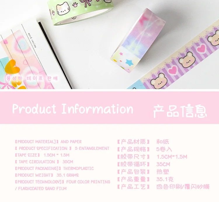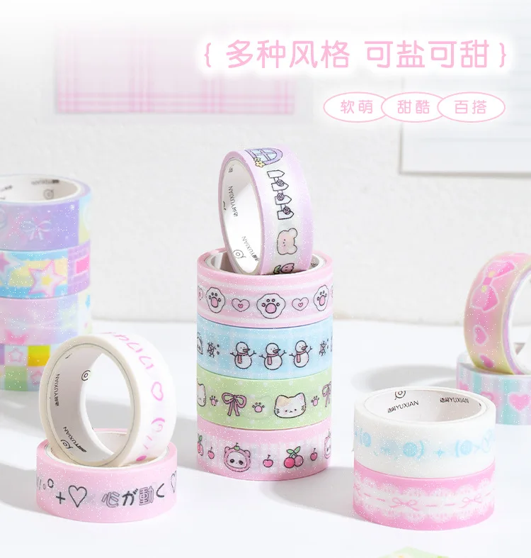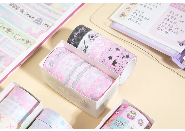 5 rollos/juego de cintas Washi de destello fino coreano, venta de sueños, pegatinas de galaxia para chica, manual, pegatinas de bucle de Material DIY