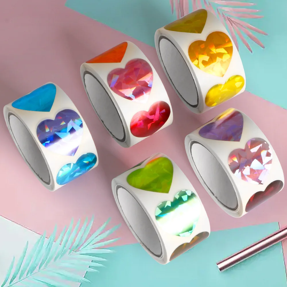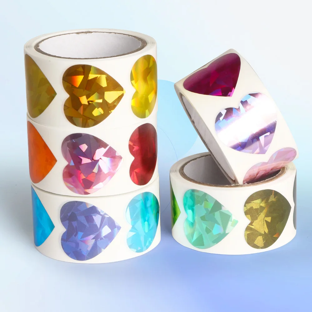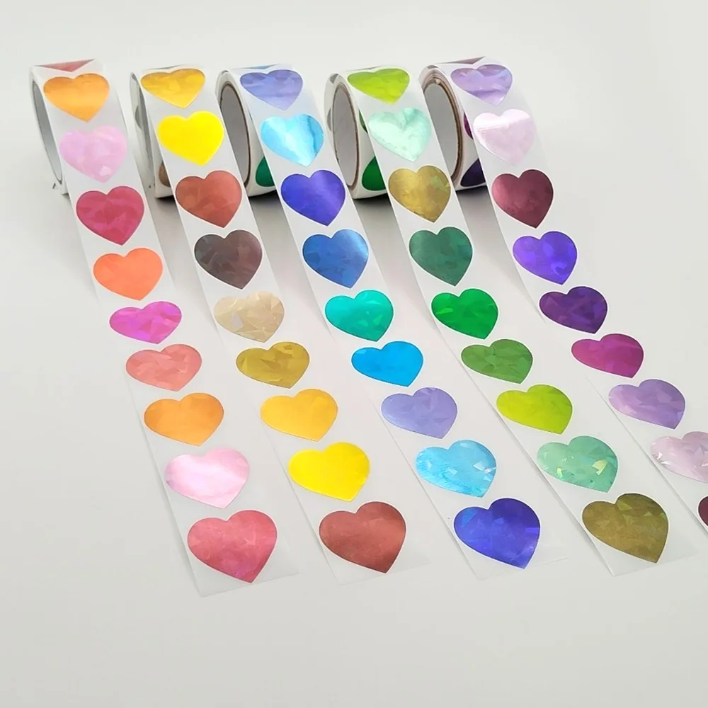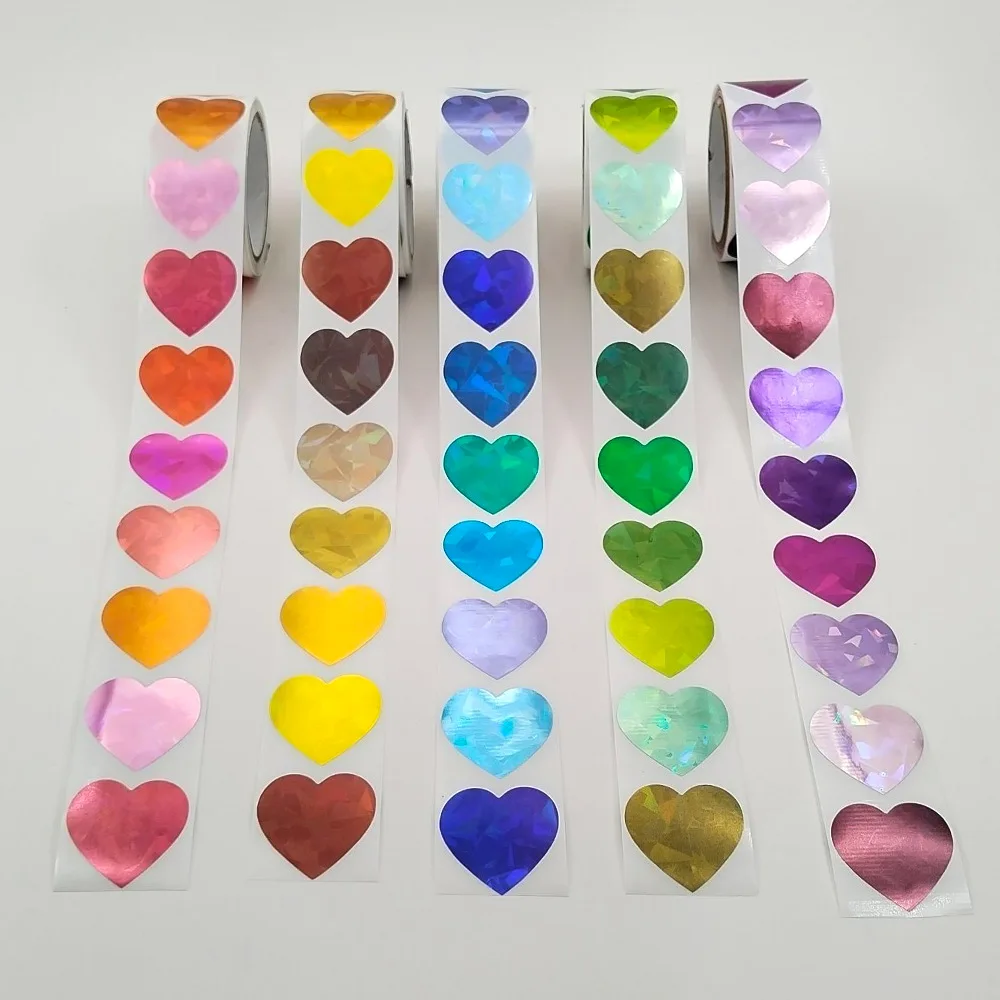 5 rollos de pegatinas holográficas de recompensa, autoadhesivas, decoración de álbum, papel de aluminio, estrella, corazón, flor, punto redondo, pegatinas Ren