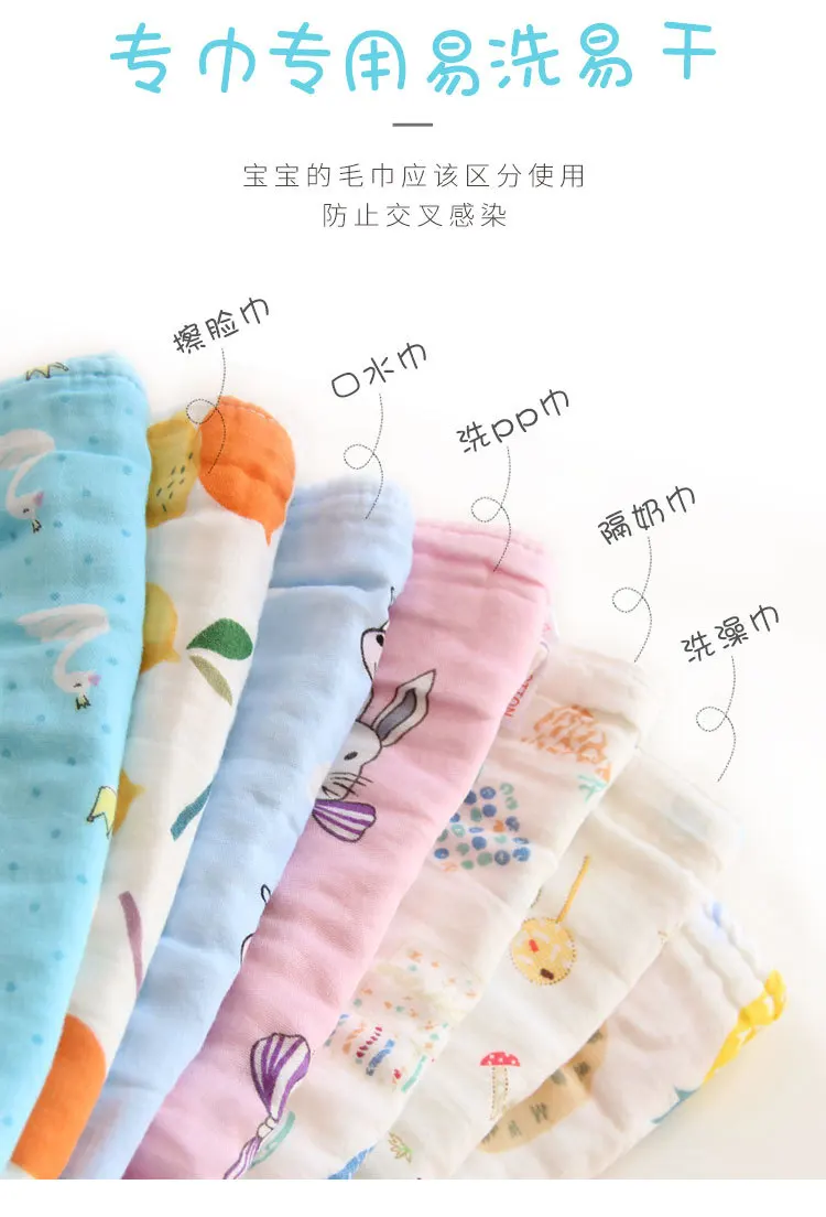 5 uds 6 capas de alta densidad 100% algodón Clase A gasa de muselina paño de limpieza pañuelo de bebé toalla de cara toalla de saliva de bebé 25x50cm