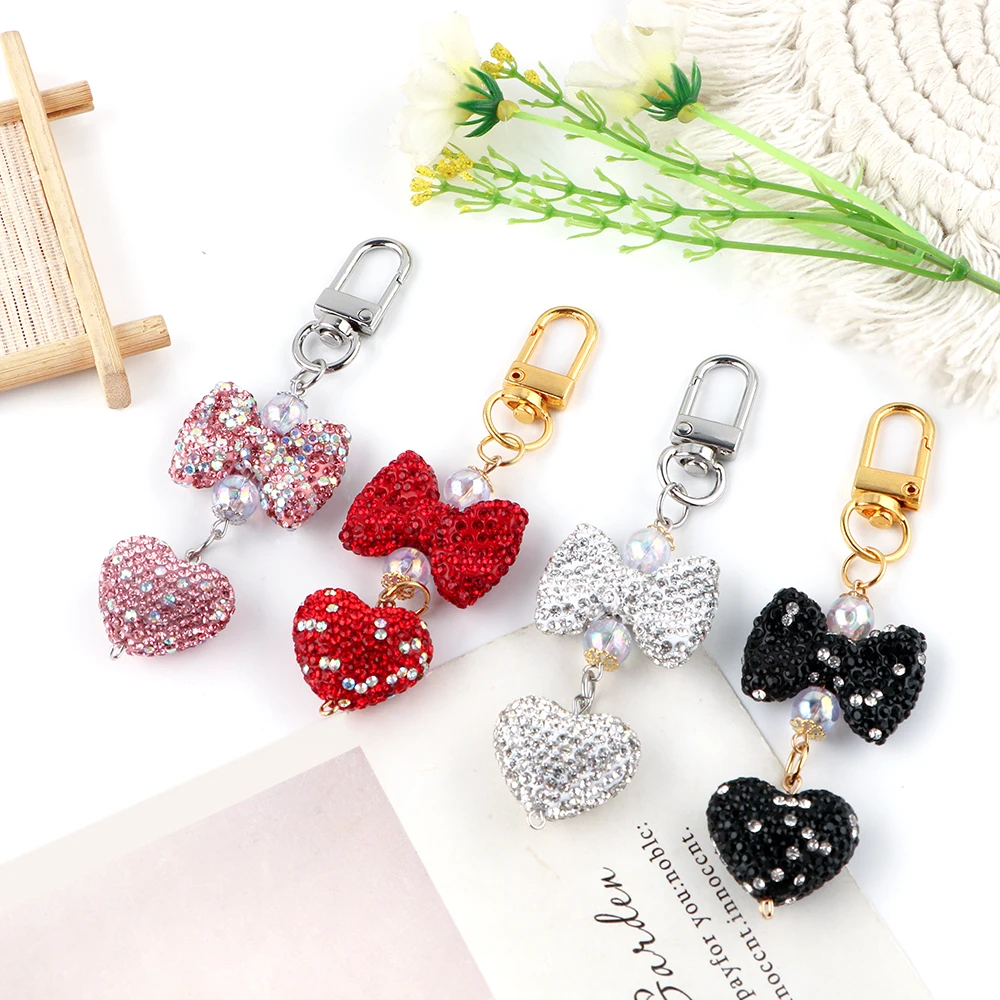5Pcs Acrylic Rhinestone Bow knot Heart Bear Bead For Jewelry Making DIY Bracelet Keychain Etc Handmade Pendants Accessories