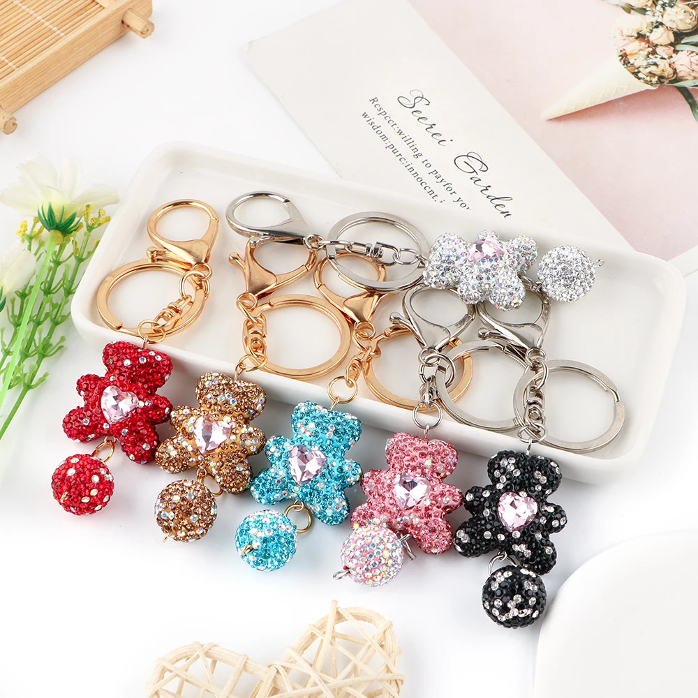 Comprar 5 uds. De cuentas acrílicas con lazo de diamantes de imitación, corazón, oso, para fabricación de joyería, llavero de pulsera DIY, Etc., accesorios colgantes hechos a mano