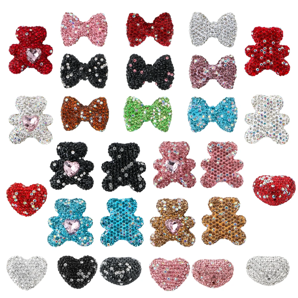 5Pcs Acrylic Rhinestone Bow knot Heart Bear Bead For Jewelry Making DIY Bracelet Keychain Etc Handmade Pendants Accessories