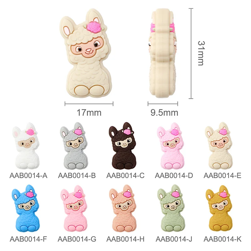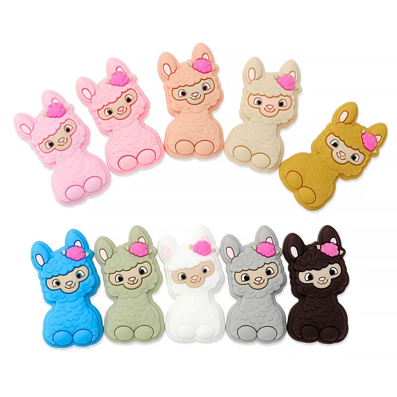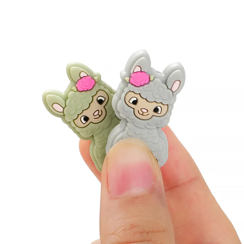 5 uds. De cuentas de silicona de animales de Alpaca de dibujos animados para fabricación de joyería DIY, cuentas de pulsera de joyería utilizadas en bolígrafo