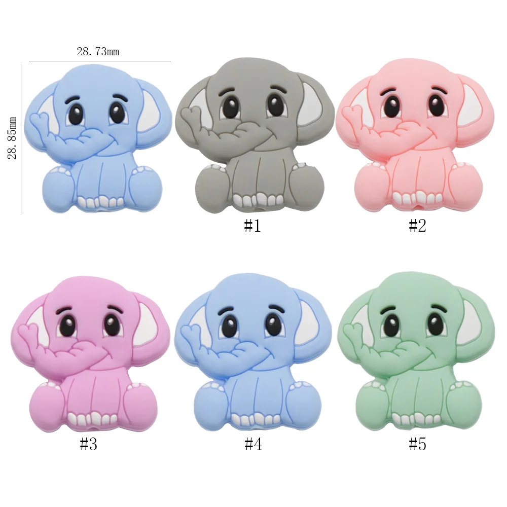 5pcs Silicone Teether Beads BPA Free Mini Elephant Animal Beads DIY Baby Teething Pacifier Chain Toys Gift Baby goods
