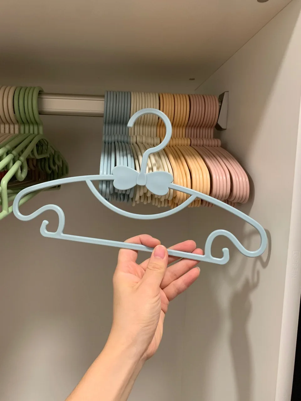 Perchas para colgar ropa para niños, perchas portátiles de plástico con exhibición para abrigos para niños