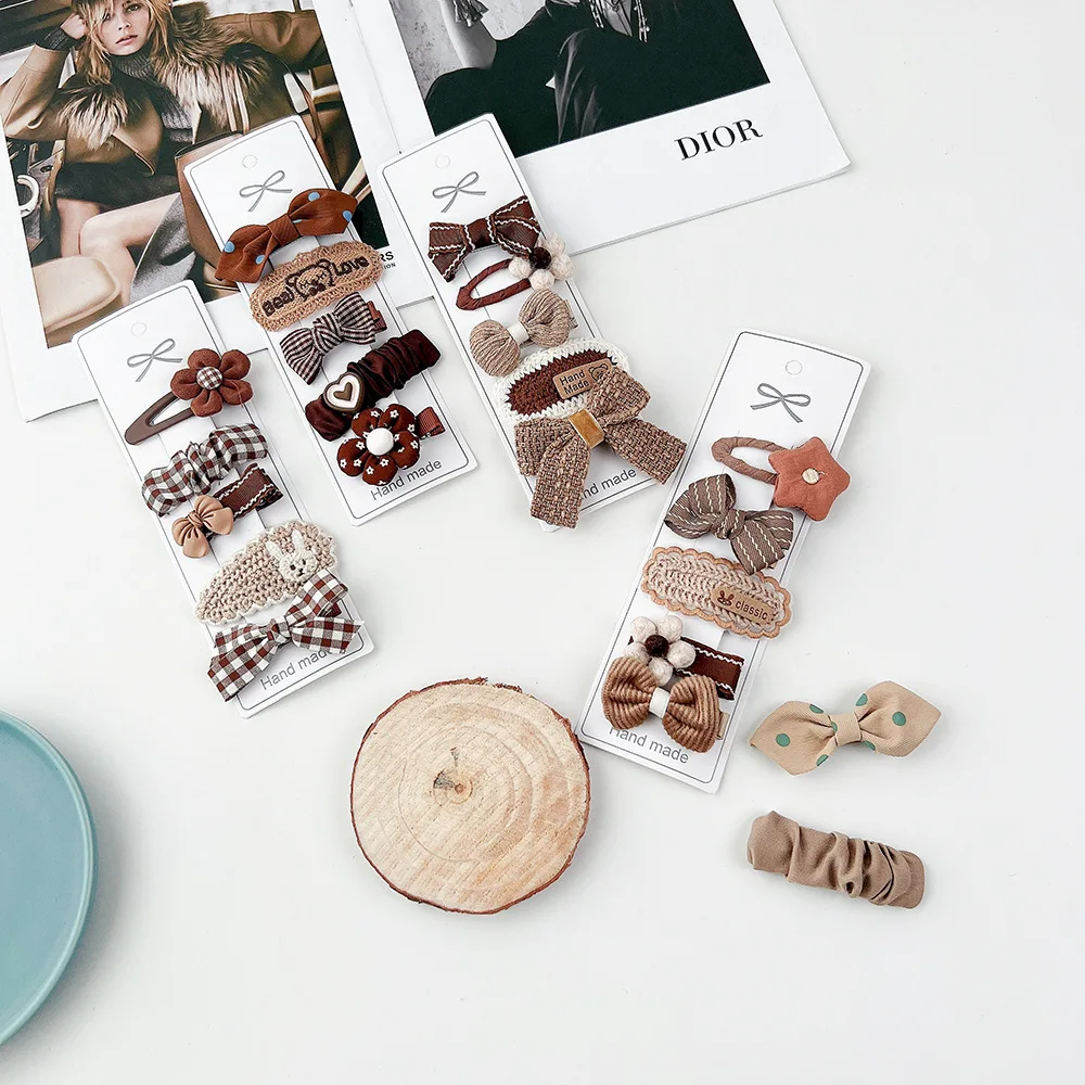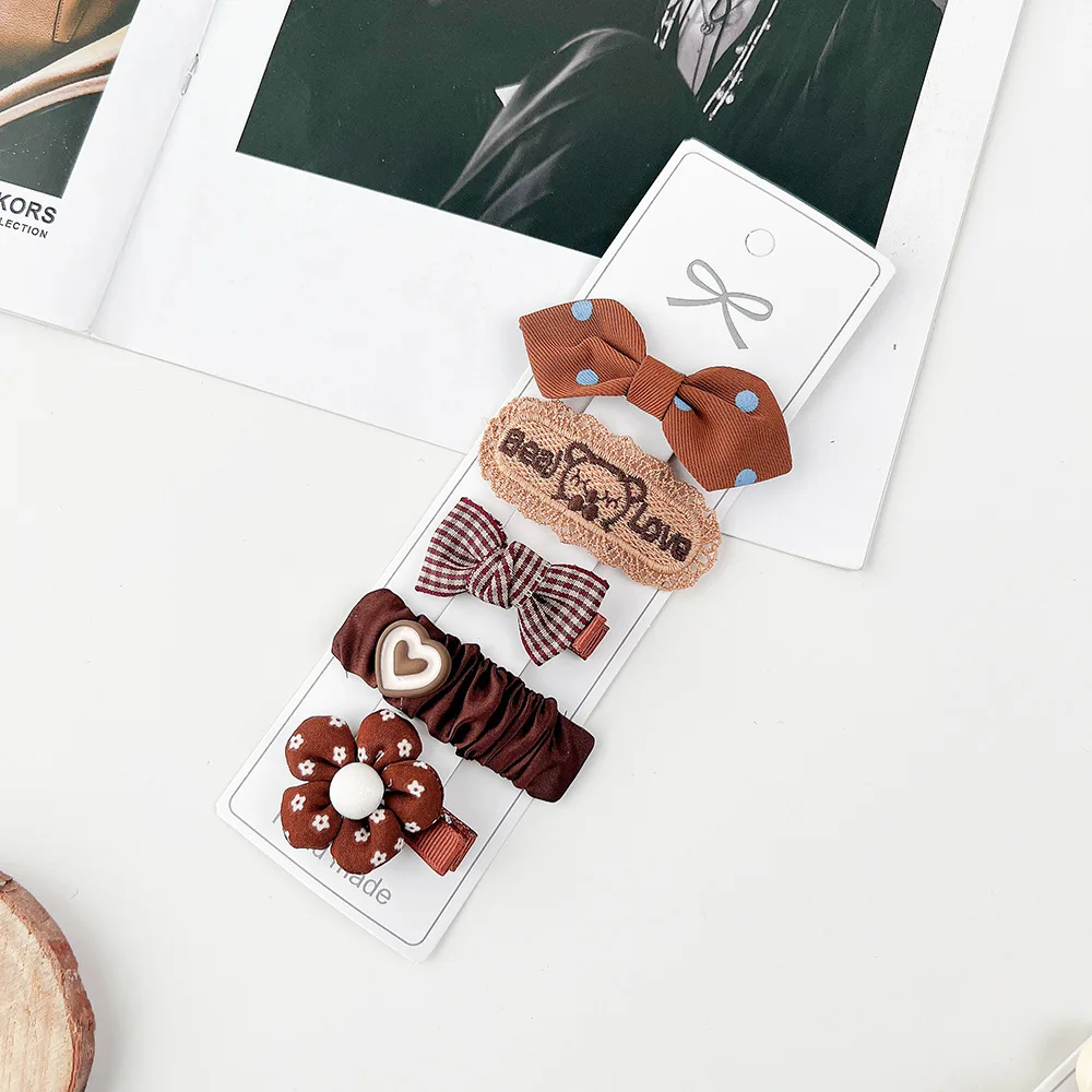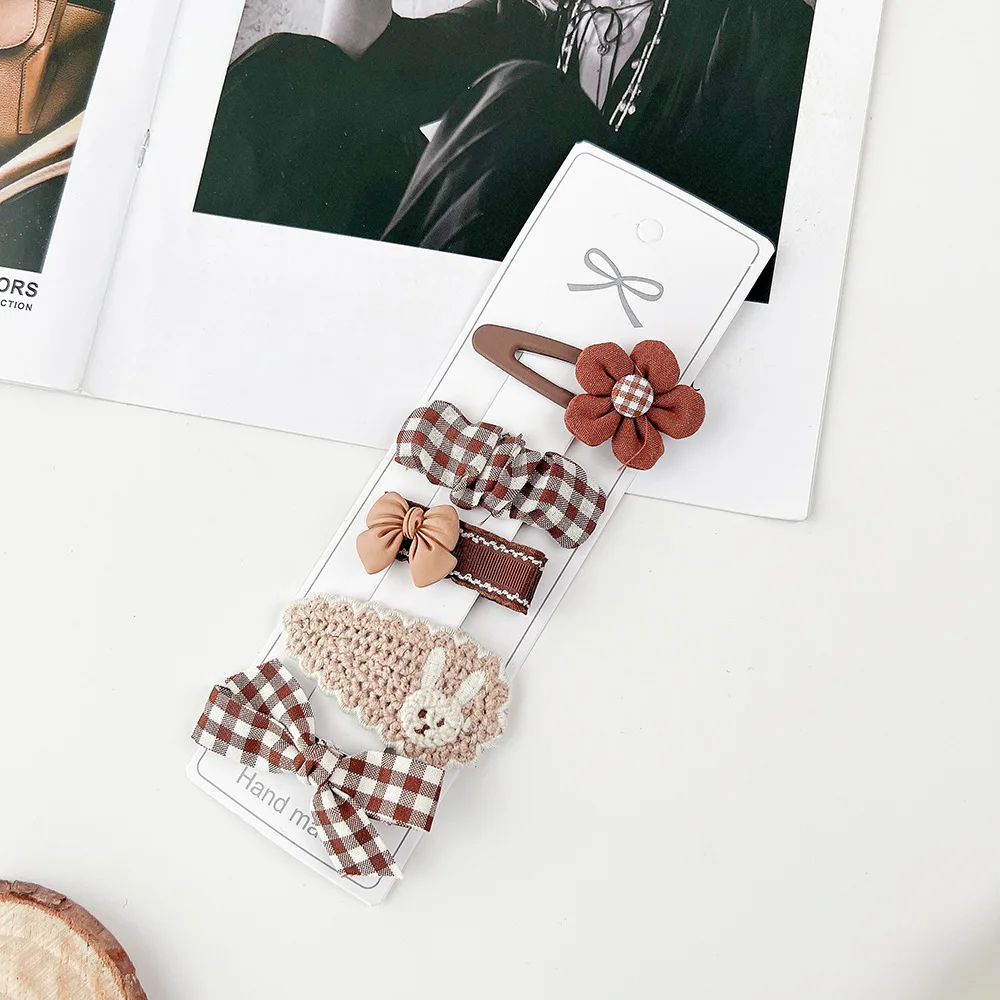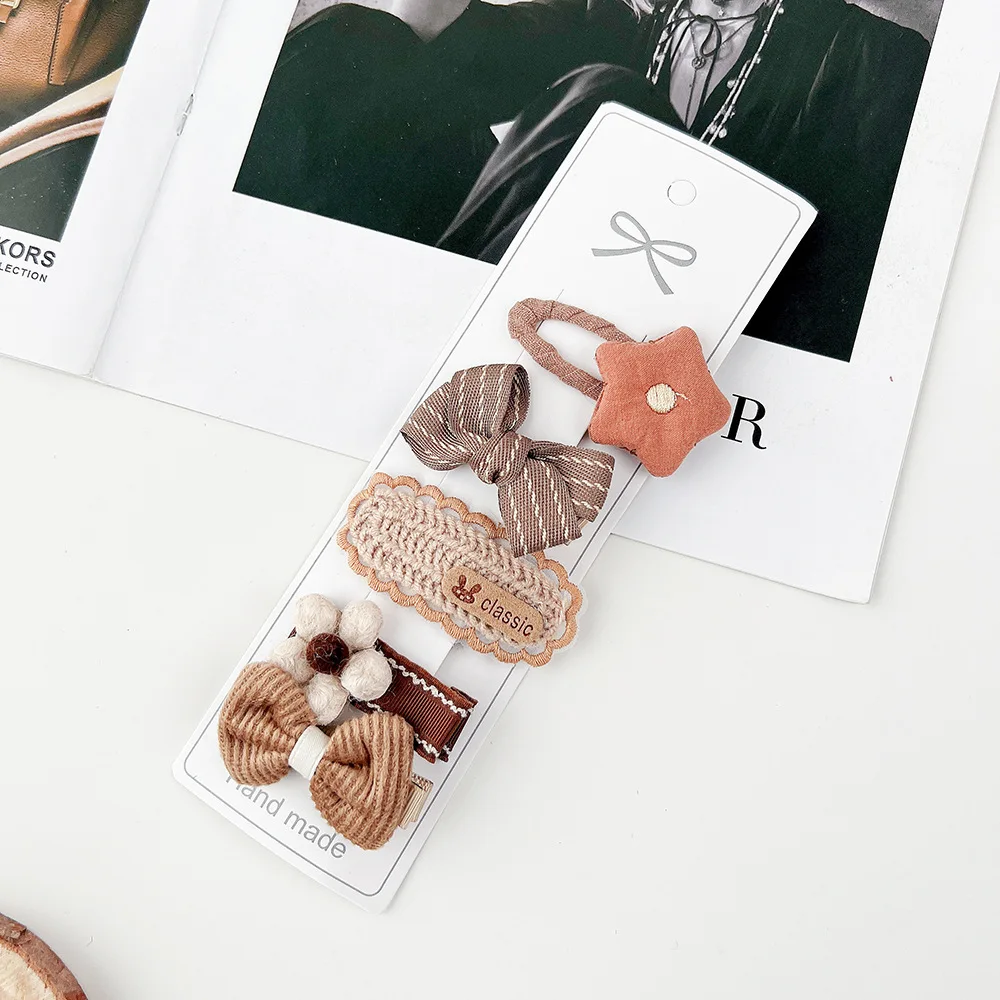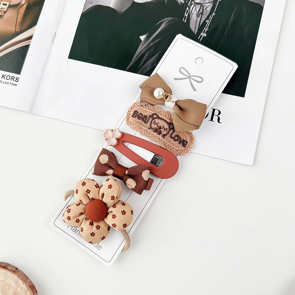 5 uds. Pinzas para el cabello Beige para niñas, lazos de tela Kawaii, conjunto de horquillas florales, accesorios bonitos para el cabello para niños pequeños, escuela