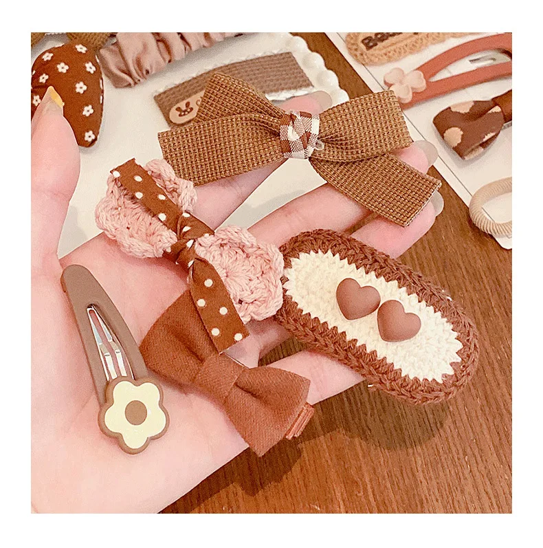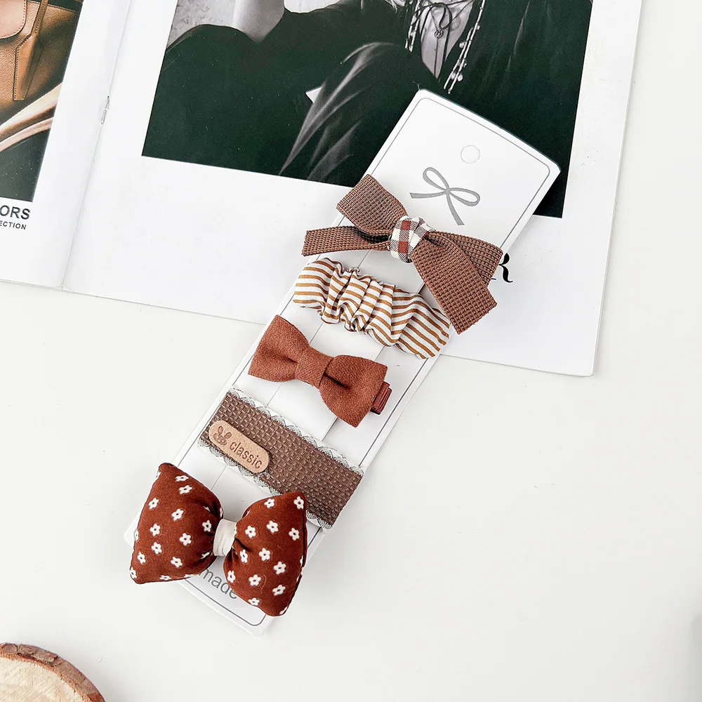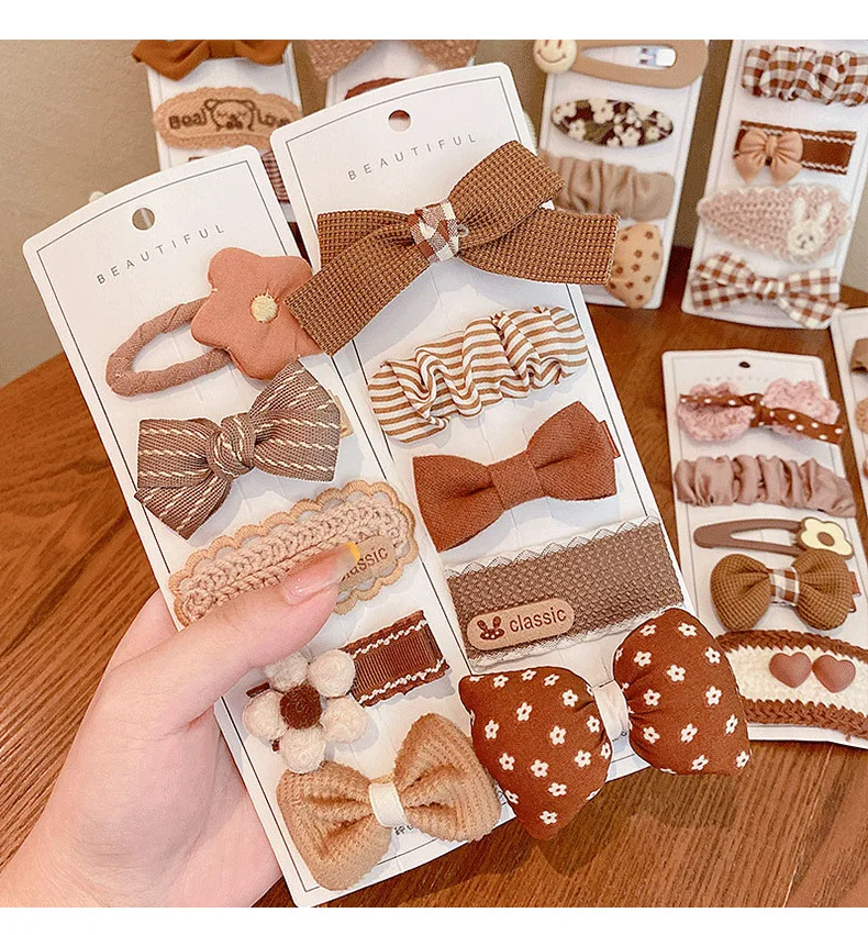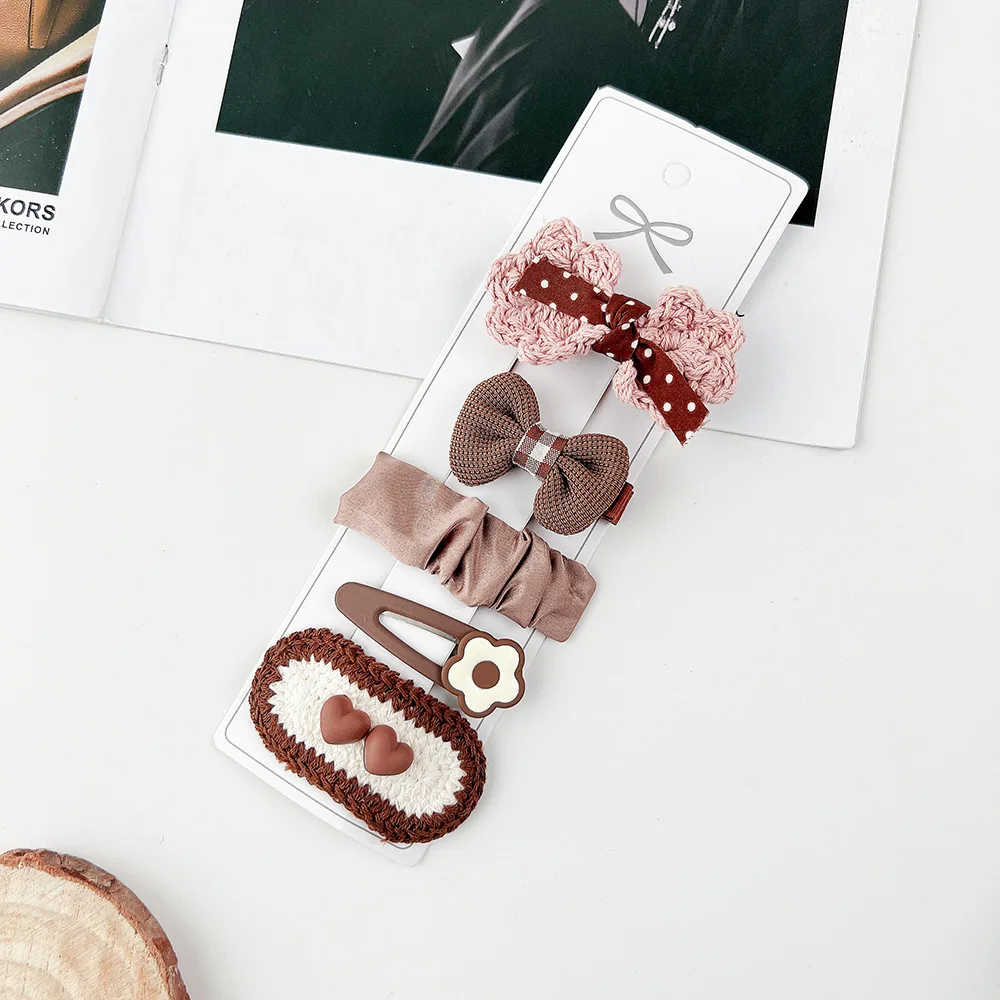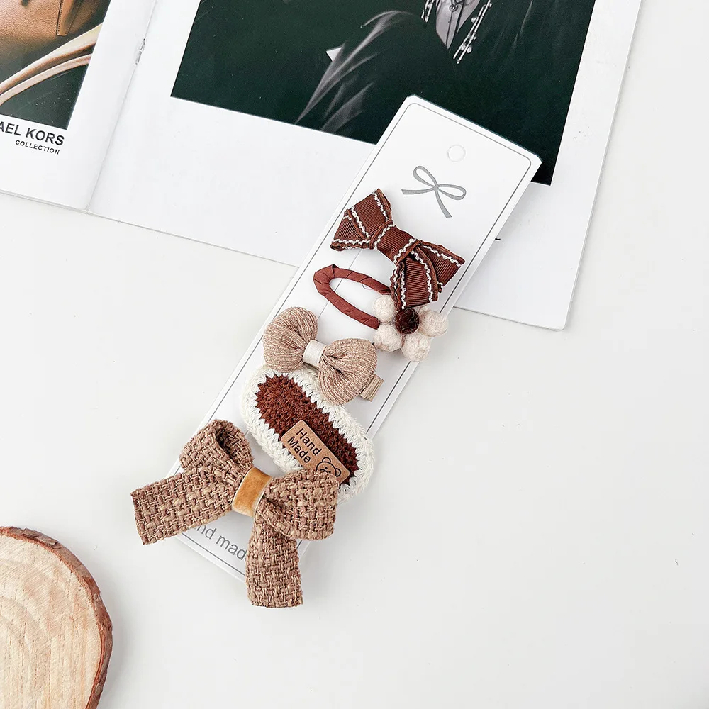 5 uds. Pinzas para el cabello Beige para niñas, lazos de tela Kawaii, conjunto de horquillas florales, accesorios bonitos para el cabello para niños pequeños, escuela