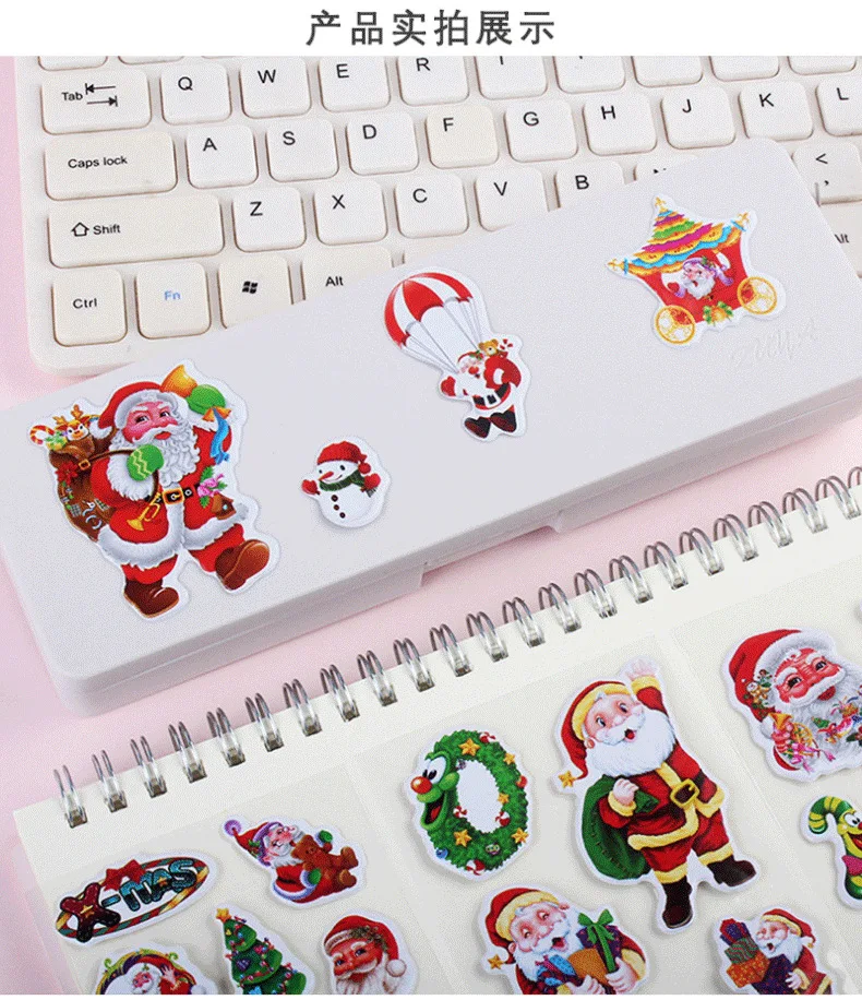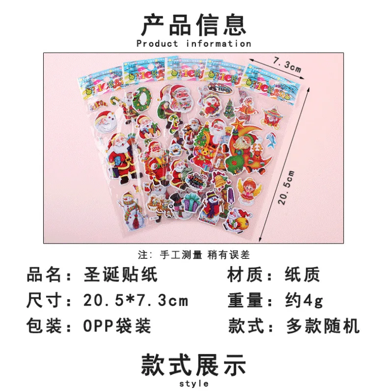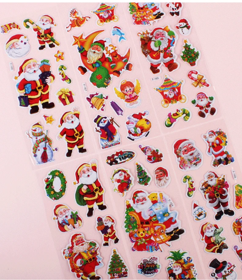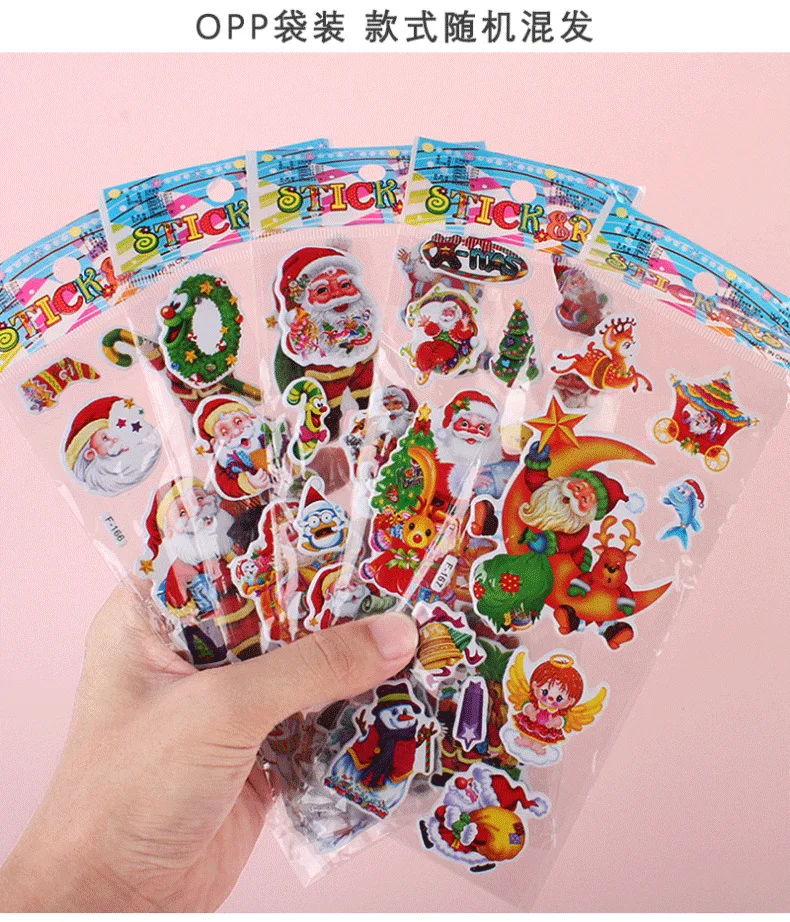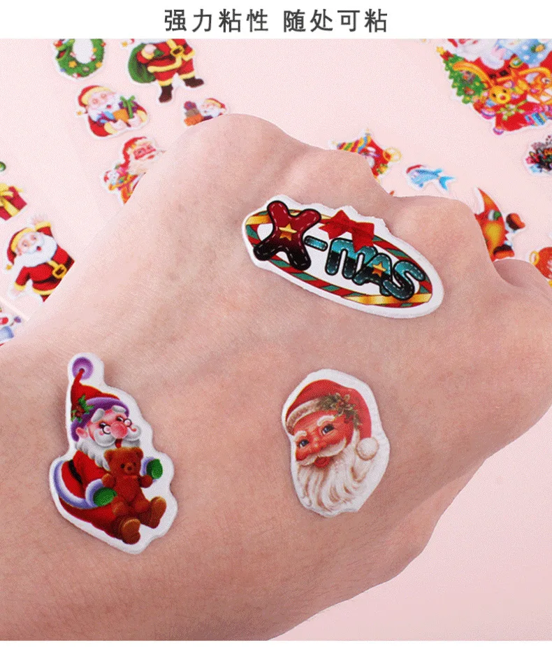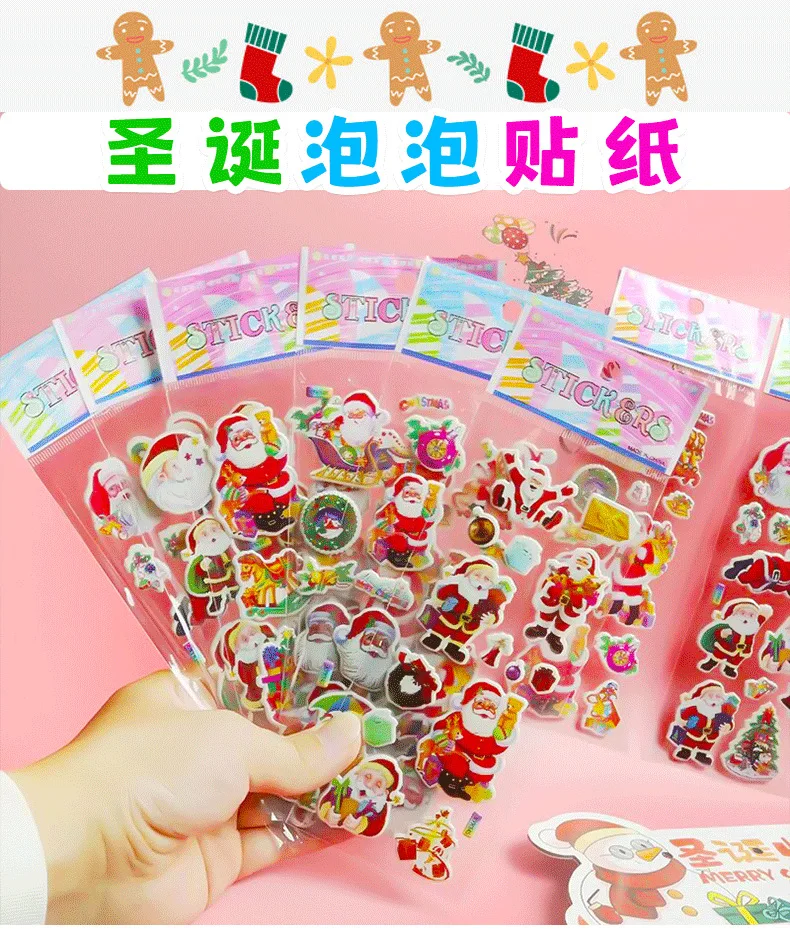 5 uds regalo de Navidad Feliz Navidad pegatina de burbujas 3D dibujos animados Santa Claus campana pegatinas hinchadas Año nuevo Navidad decoración adhesiva para chico