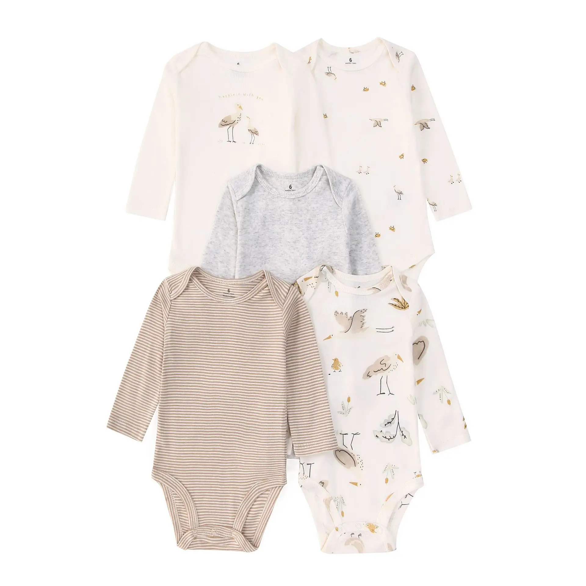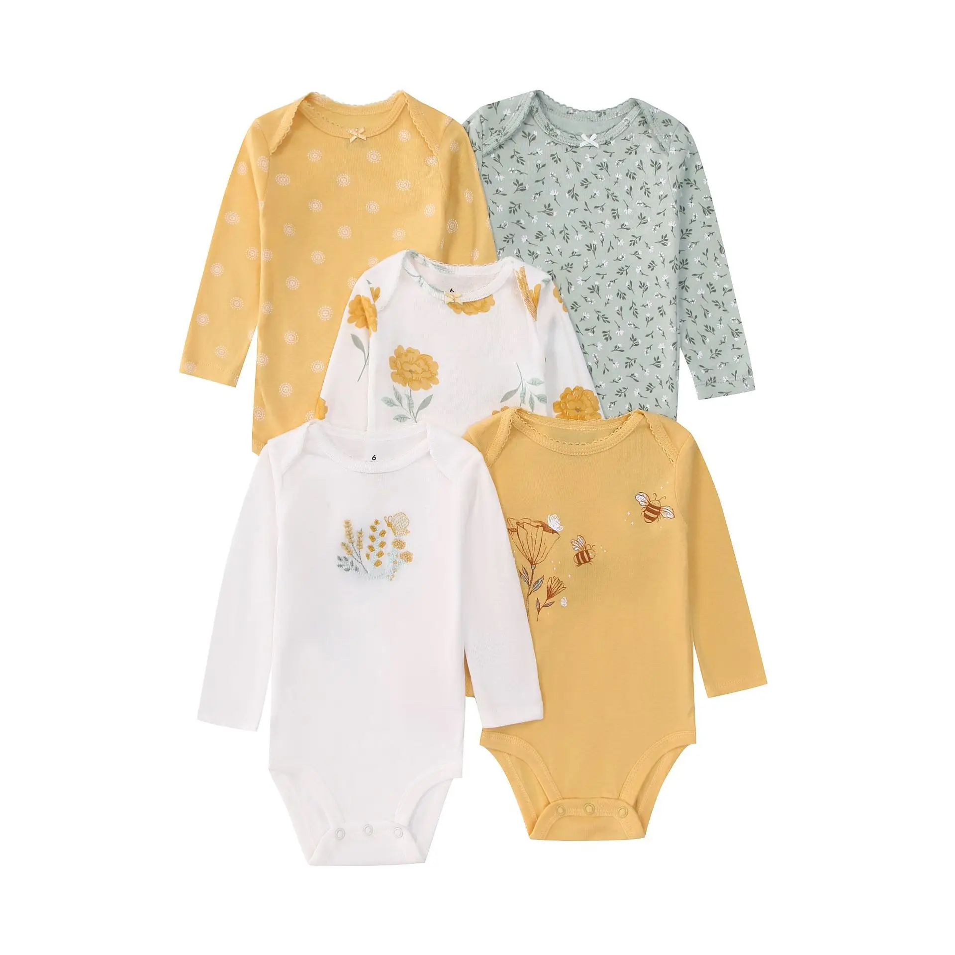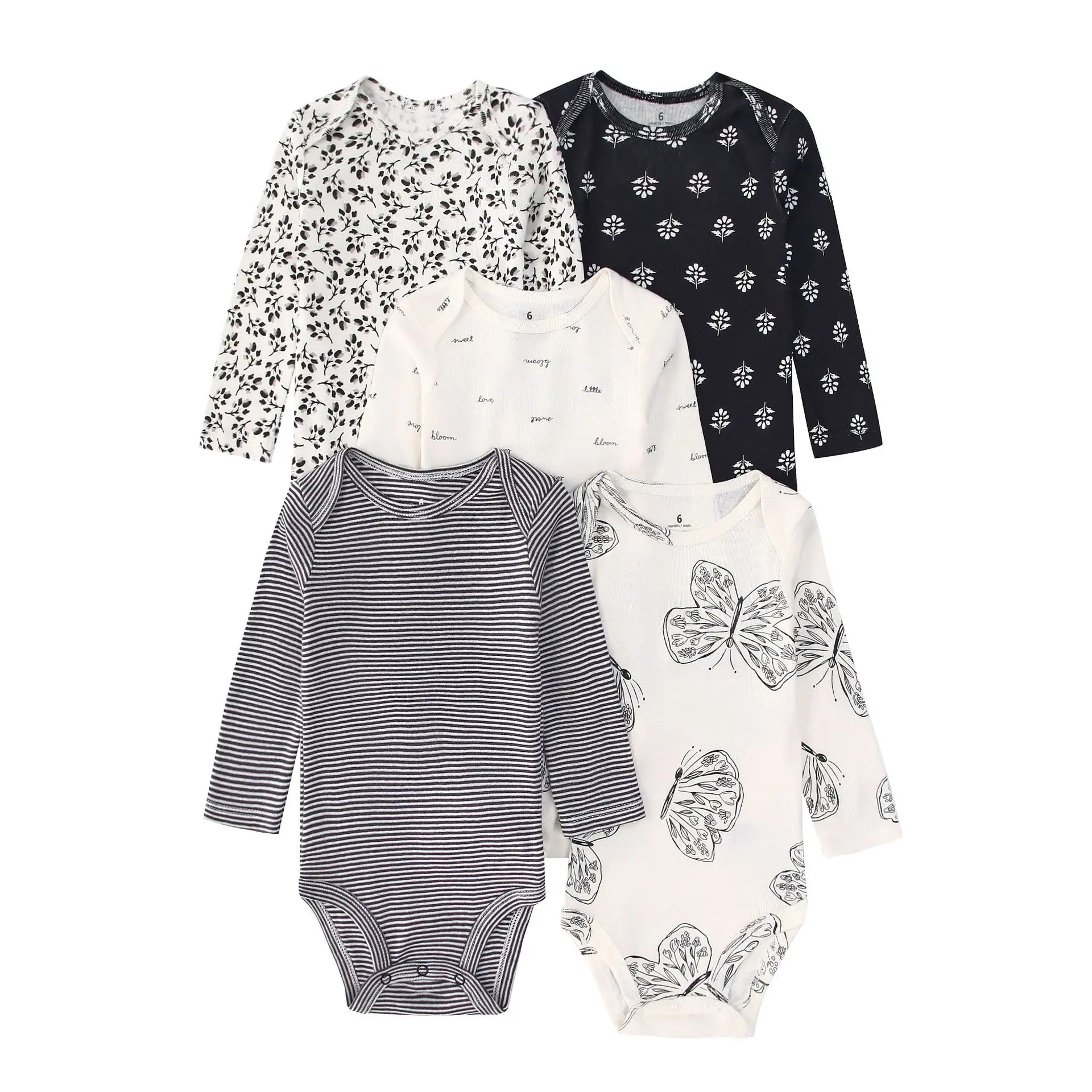 5 unids/lote 100% monos suaves de algodón para bebé de manga larga para recién nacido, niño y niña, monos infantiles, ropa para bebé, regalos para Baby Shower