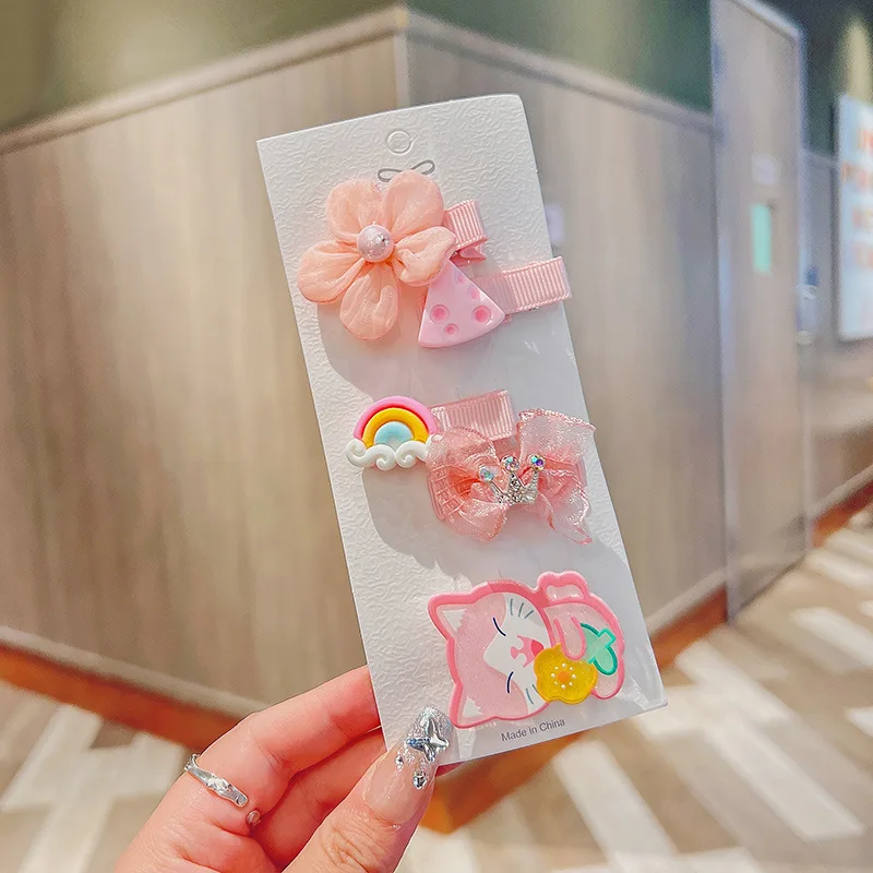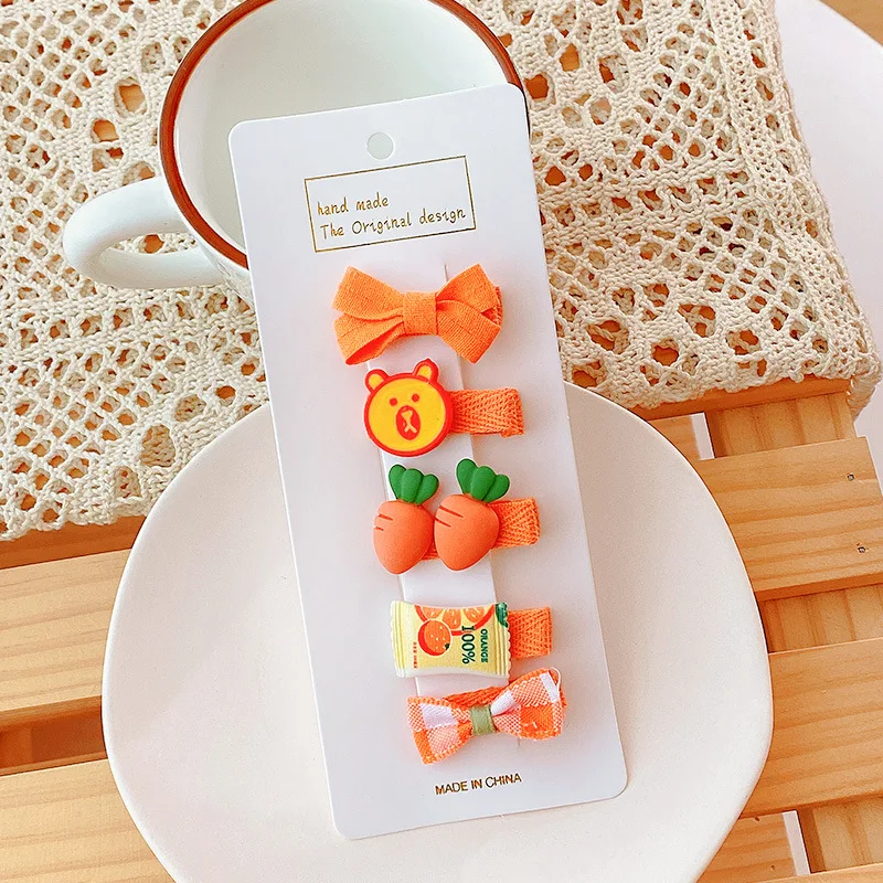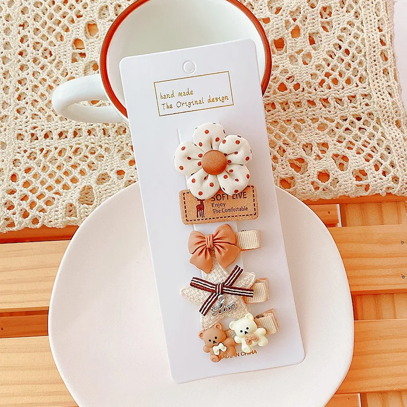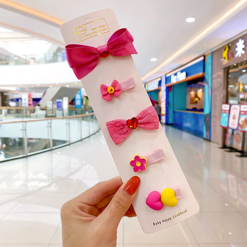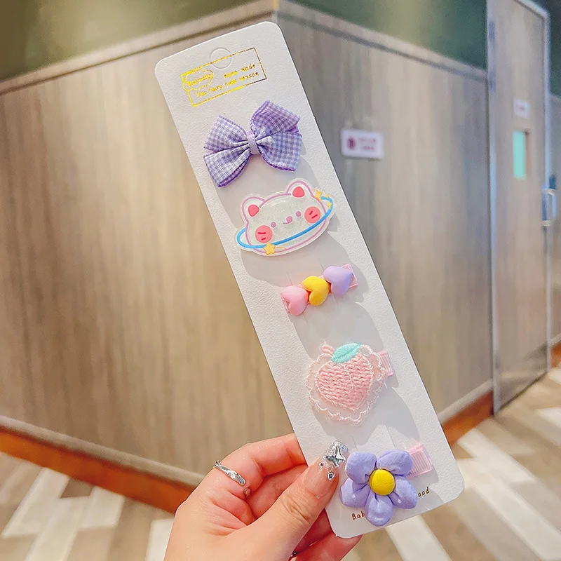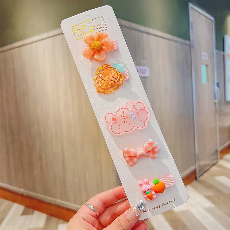 5 unids/lote de pinzas para el pelo de bebé de dibujos animados, Clips a presión, Mini pasadores de lazo de tela estilo princesa coreana para recién nacido, niño niña