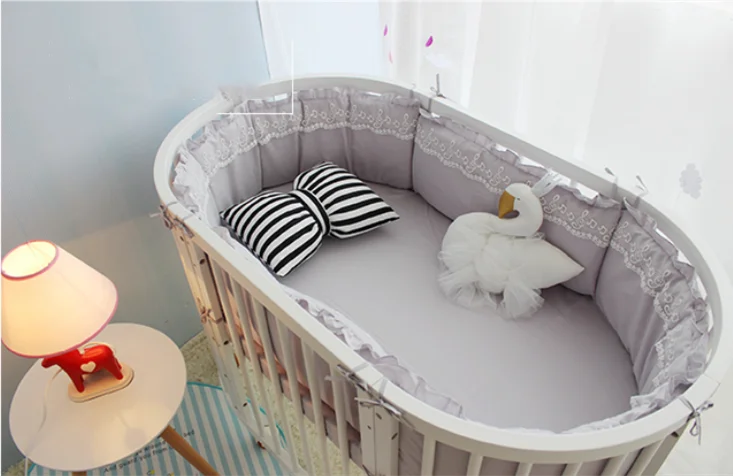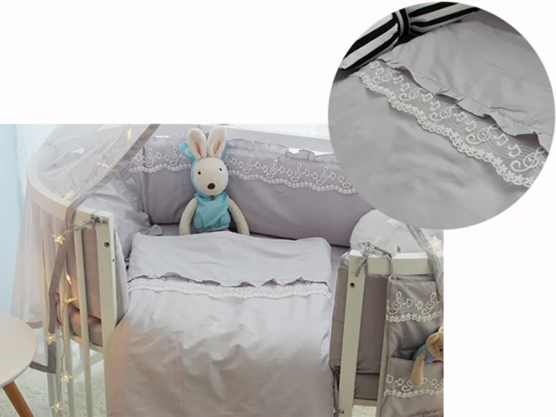 Nombre del producto: Kit circundante de cama para niños de color puro de estilo de lujo ligeroJuego de 5 piezas=4 parachoques + 1 funda de colchón.