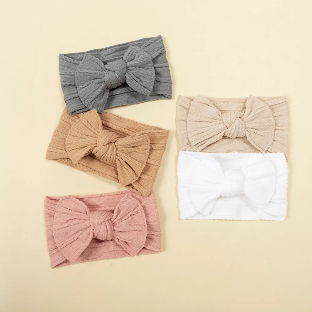 Comprar 5 unids/set diadema para niña, bonita banda elástica para el pelo con lazo para bebé recién nacido, gorros de nailon suave para niño, accesorios para el cabello para niño