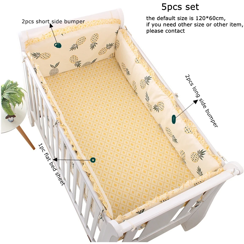 El juego incluye: cojín para la cabeza*1, parachoques lateral corto*1, sábana plana*1, parachoques lateral largo*2.Total 5.