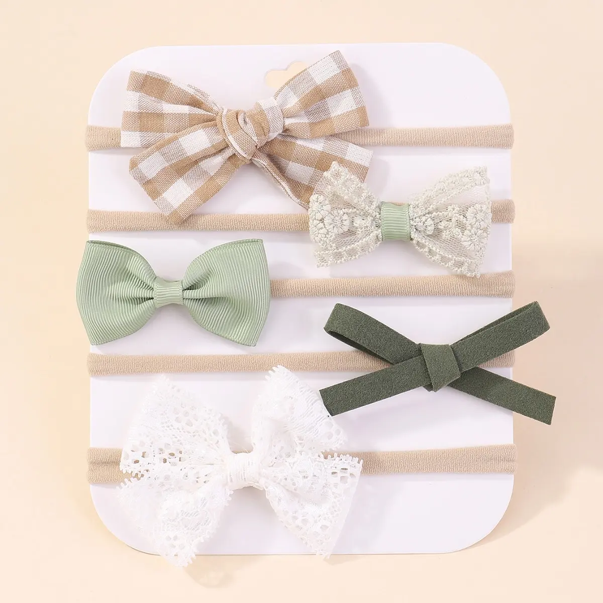 5 unids/set suave accesorios para el cabello de bebé diadema de flores de encaje lazos de algodón de nailon para niñas recién nacidas niños pequeños bandas para el cabello estampadas