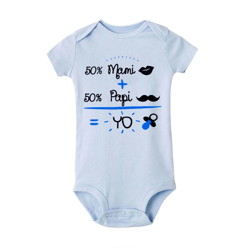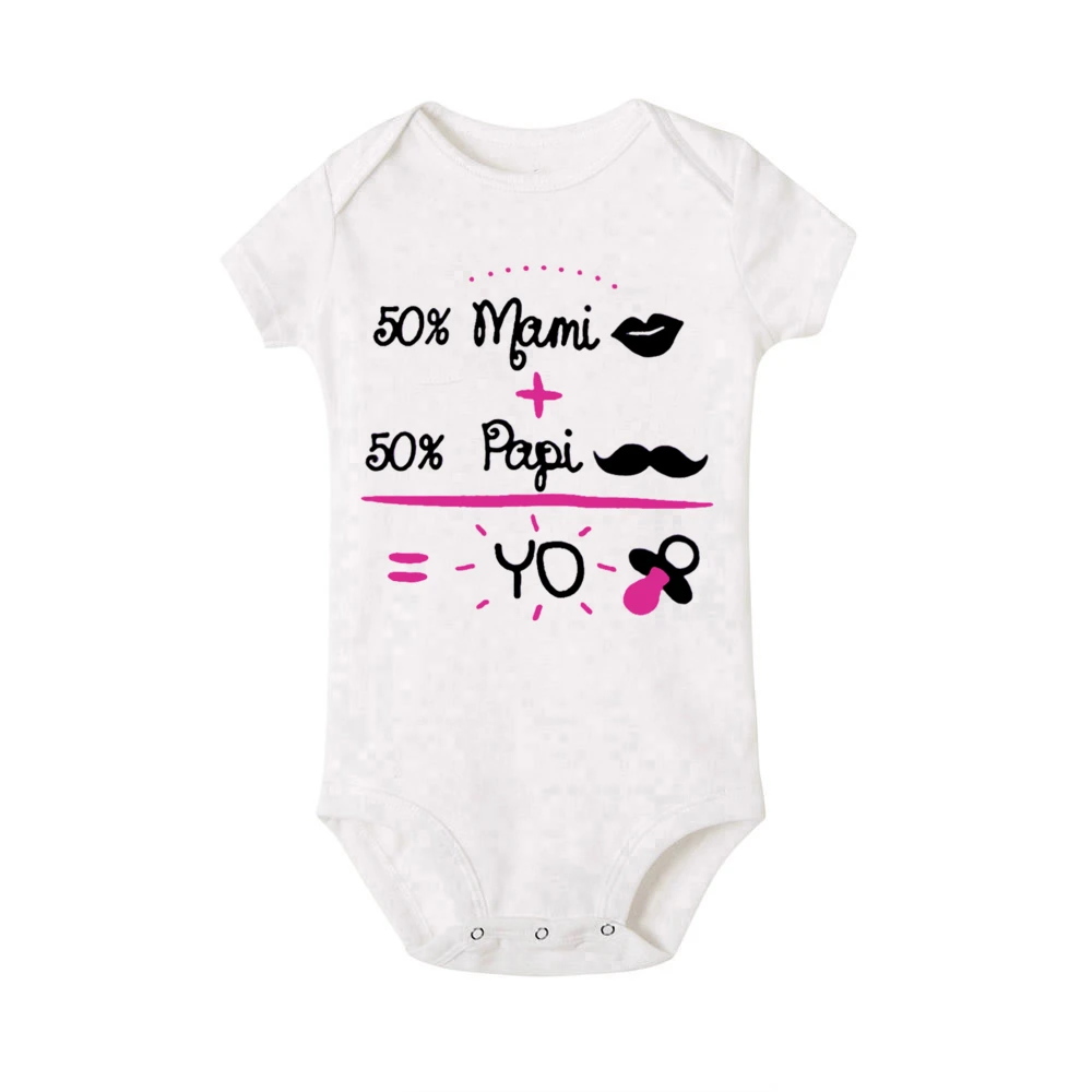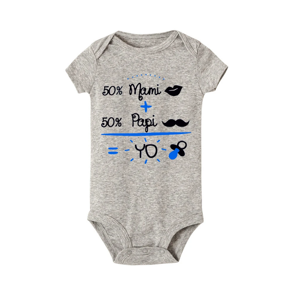 50% papá + 50% mamá=yo Mono con estampado español para bebé, traje divertido para recién nacido, pelele de manga corta para niño pequeño, mono bonito, ropa