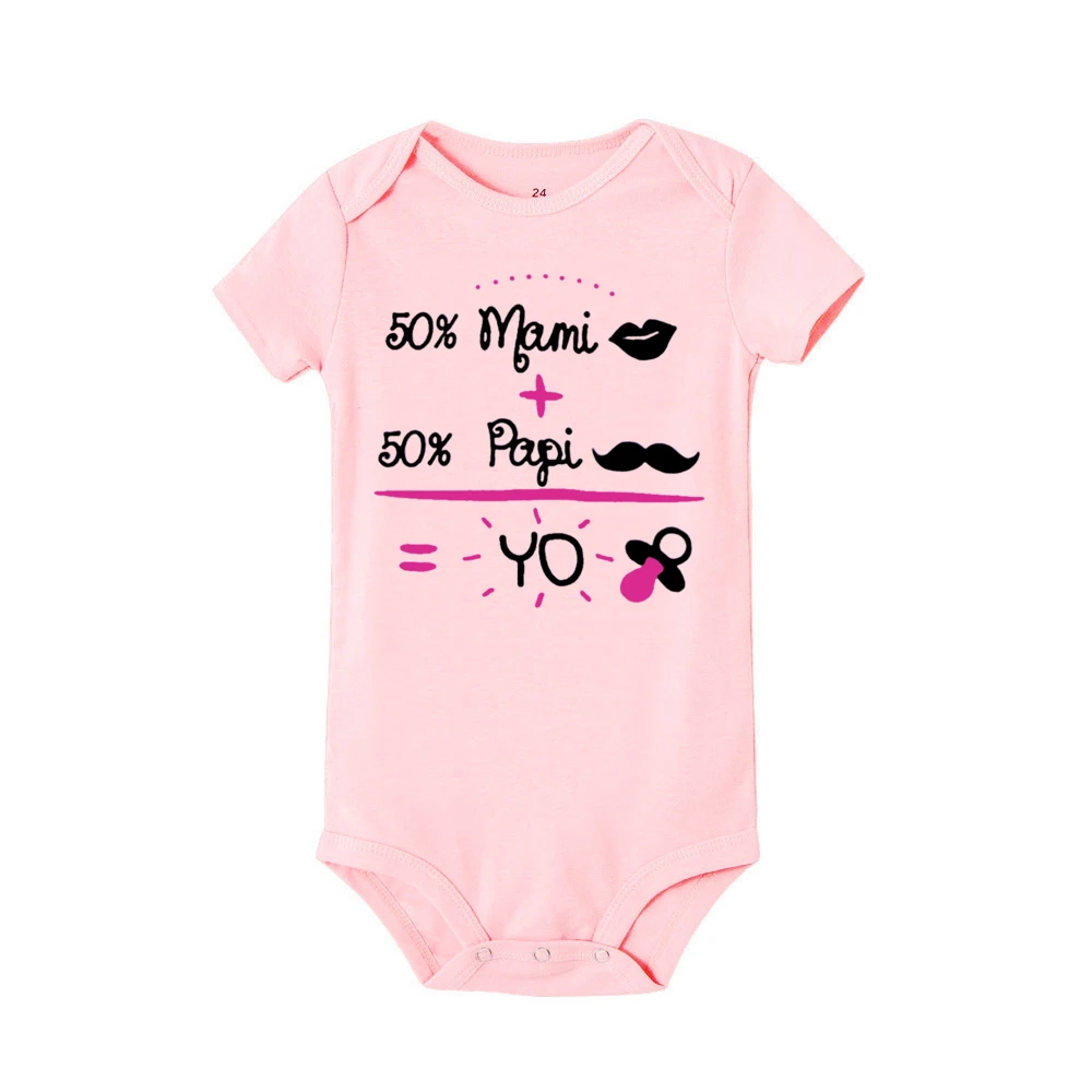 Comprar 50% papá + 50% mamá = yo mono con estampado español para bebé, traje divertido para recién nacido, pelele de manga corta para niño, mono bonito, ropa