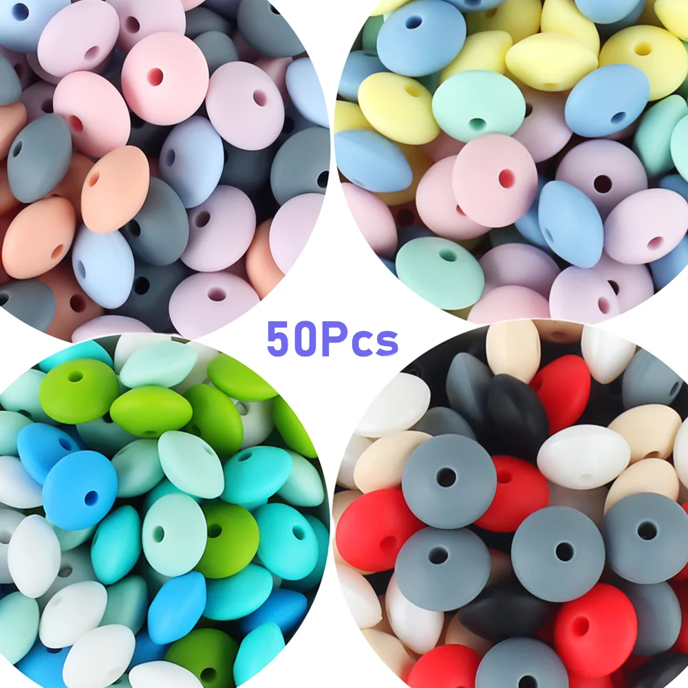 50 cuentas de silicona para bebé, cuentas de lentejas de 12MM, colgante de cadena de chupete para bebé, sin BPA, respetuoso con el medio ambiente, juguetes para morder