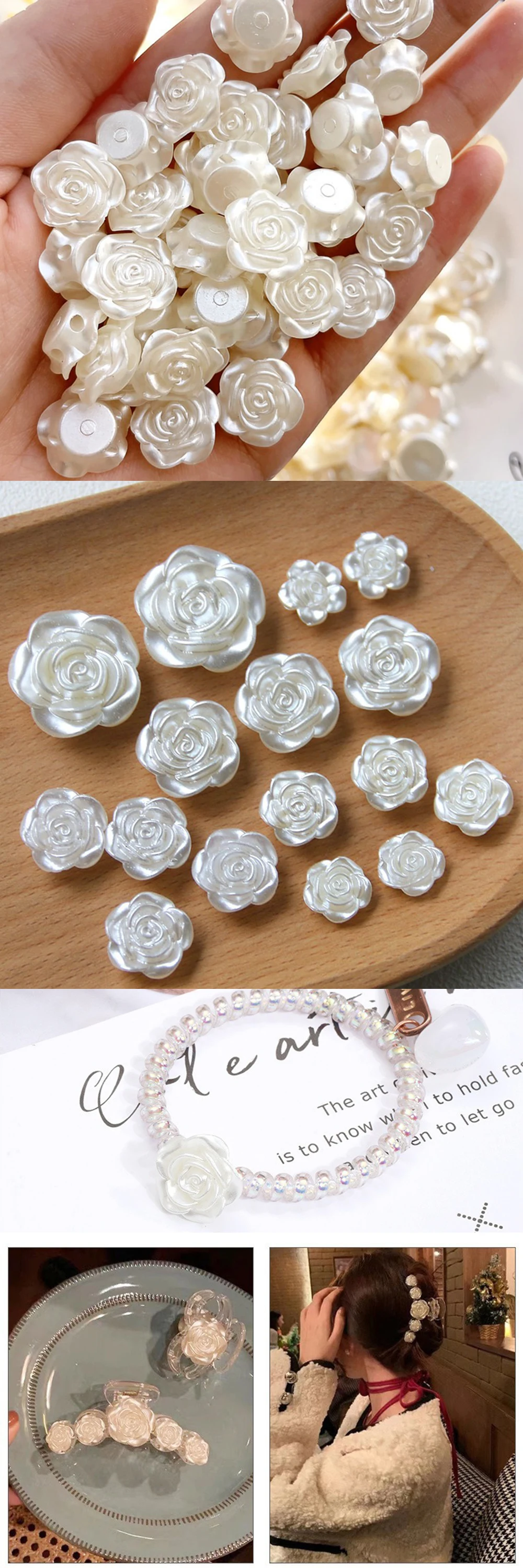 Comprar 50 Uds joyería de cuentas de rosas DIY elegante Retro 3D Rosa Camelia flor cuentas collar de perlas de imitación pulsera horquilla decoración ZYF