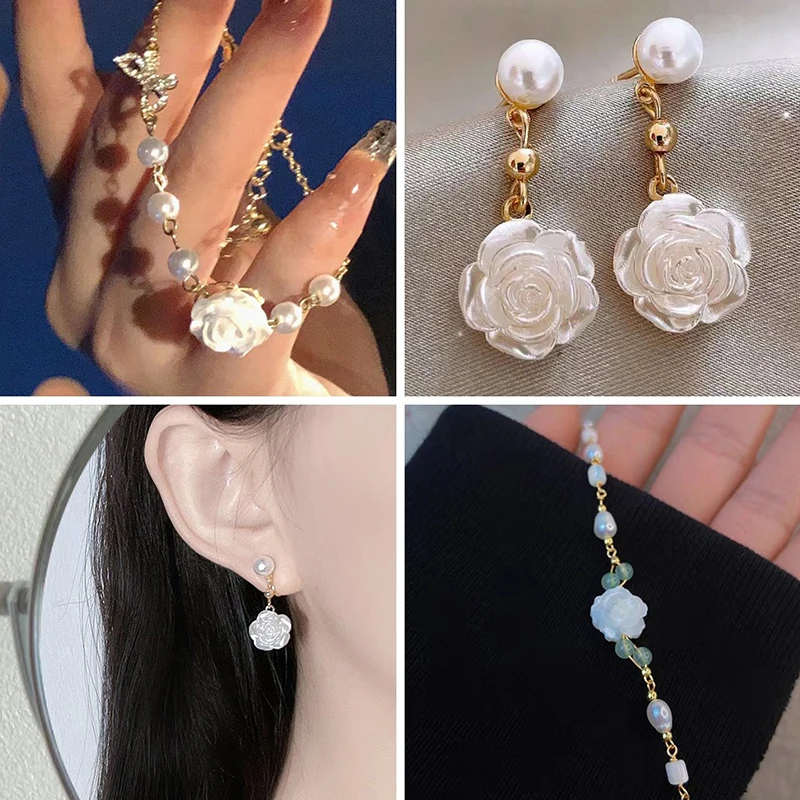 Comprar 50 Uds joyería de cuentas de rosas DIY elegante Retro 3D Rosa Camelia flor cuentas collar de perlas de imitación pulsera horquilla decoración ZYF