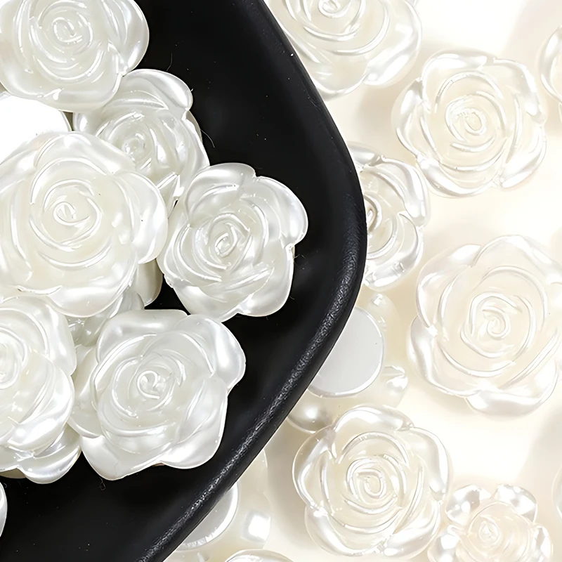 1.Forma realista: los botones tienen forma de rosas con texturas de pétalos claros, como flores reales en miniatura.Son tridimensionales y vívidos, añadiendo belleza decorativa.