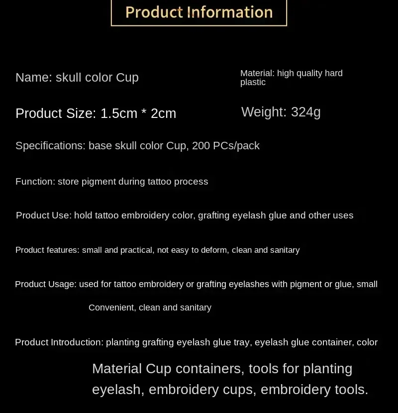 1.Forma de calavera: los vasos de tinta para tatuajes con un diseño en forma de calavera añaden personalidad a su estación de trabajo para darle un toque distintivo.