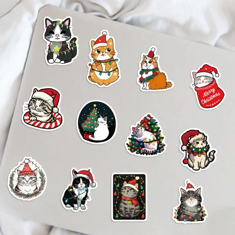 Comprar 50 Uds. De pegatinas bonitas de gato de Navidad, decoración de Graffiti, funda de teléfono, cuaderno para iPad, pegatinas DIY impermeables
