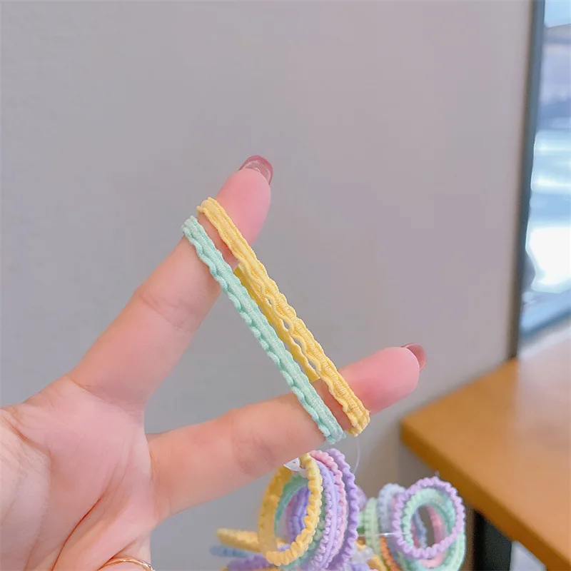 50 Uds. Versión coreana de banda para el cabello de Color caramelo, banda de goma pequeña de encaje de Color para niños, diadema con lazo para bebé, tocado bonito para niña
