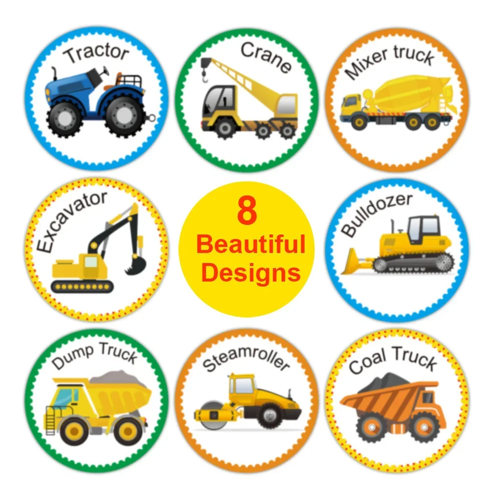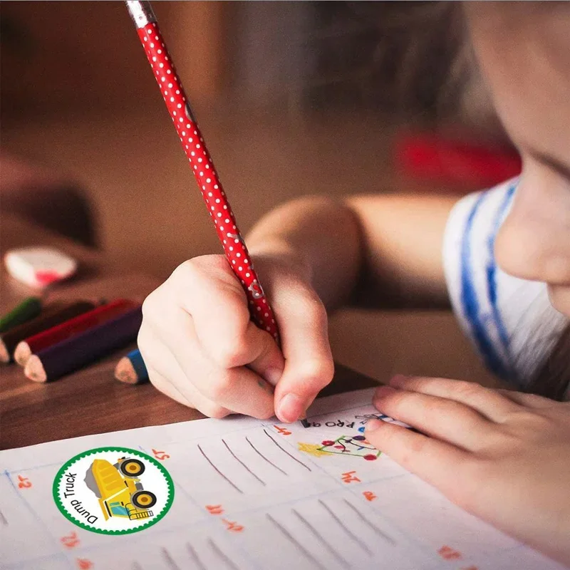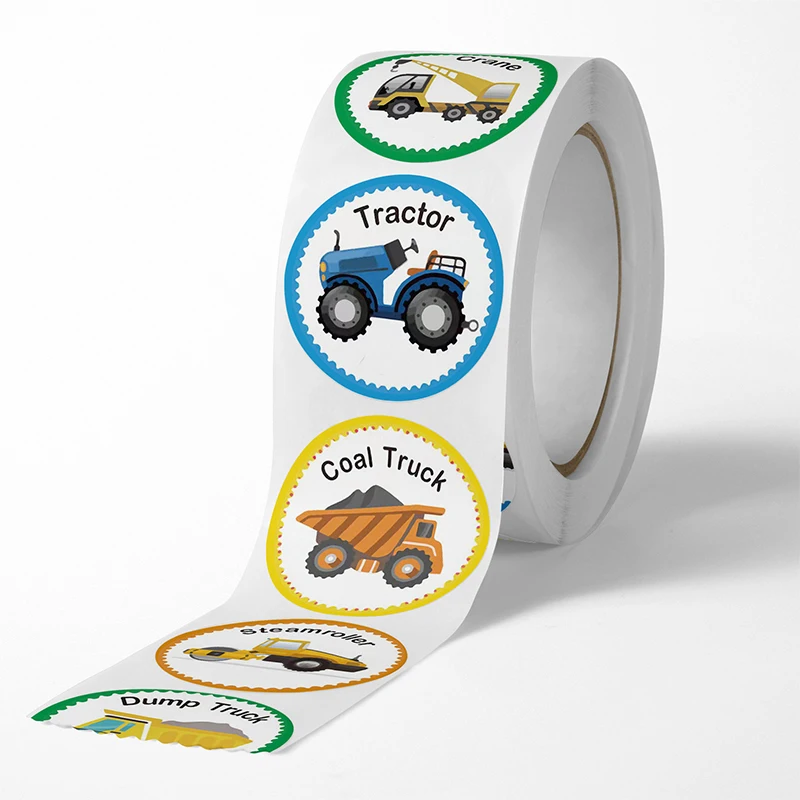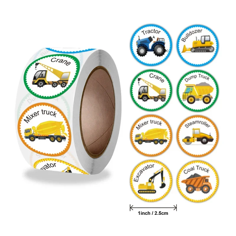 Comprar 500 uds/rollo de pegatinas de patrón de camión de transporte de vehículos de construcción de dibujos animados para niños, pegatina de recompensa a granel