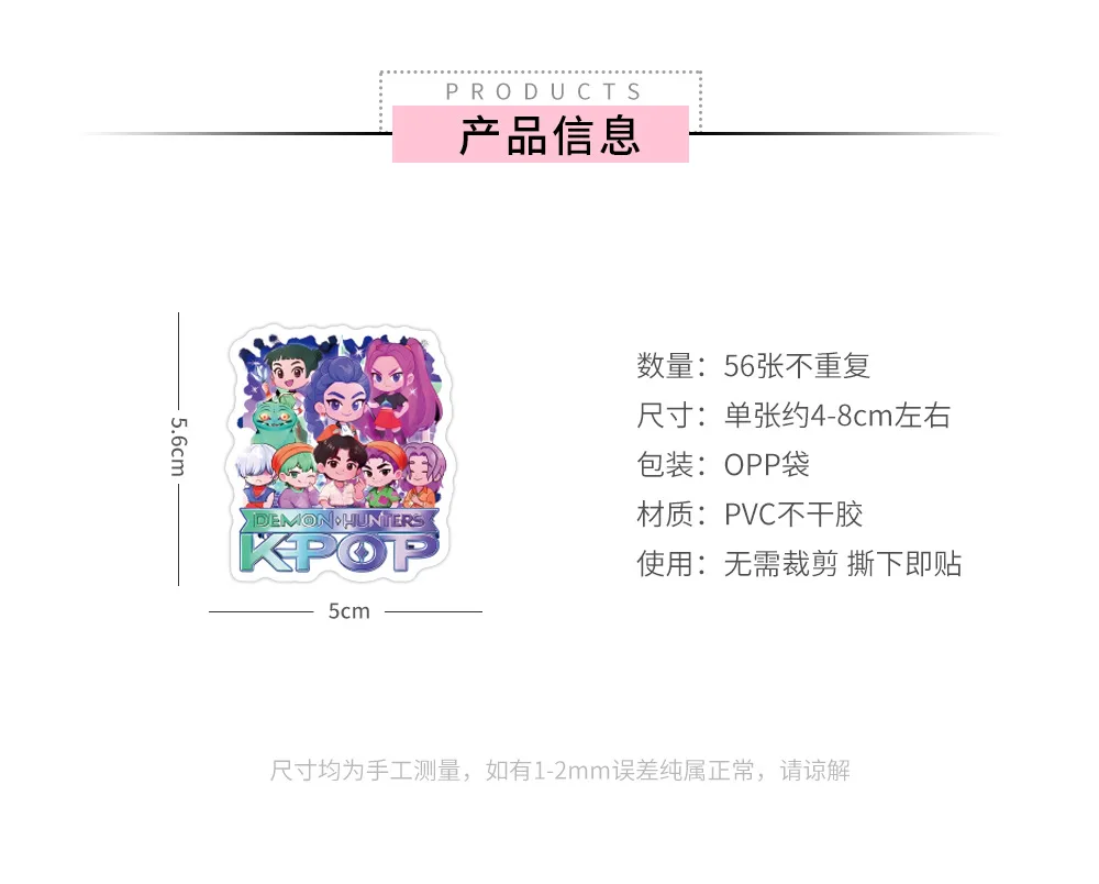 55 unids/set Kpop Demon Hunters pegatinas Anime juego calcomanías de dibujos animados DIY álbum de recortes teléfono nevera equipaje monopatín bicicleta Juguetes