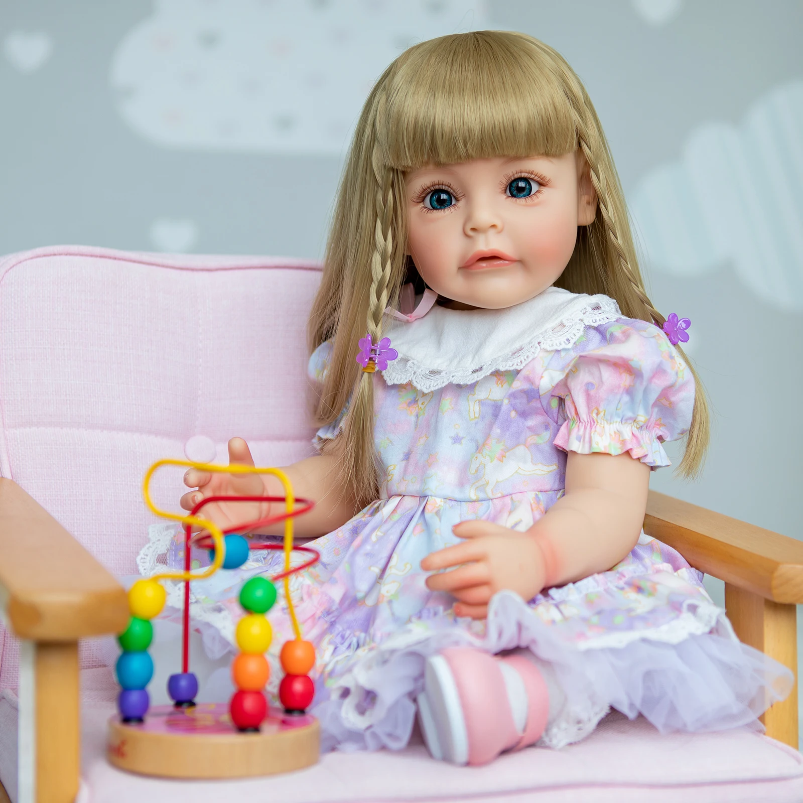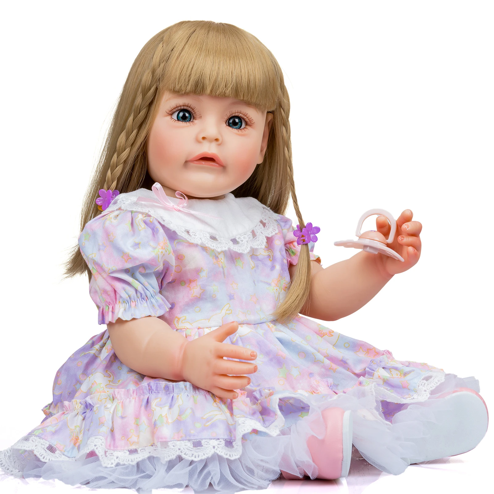 Muñeca Reborn de silicona de cuerpo completo de 55CM, princesa Sue-Sue, pintura detallada a mano con peluca larga rubia, muñeca realista para niña