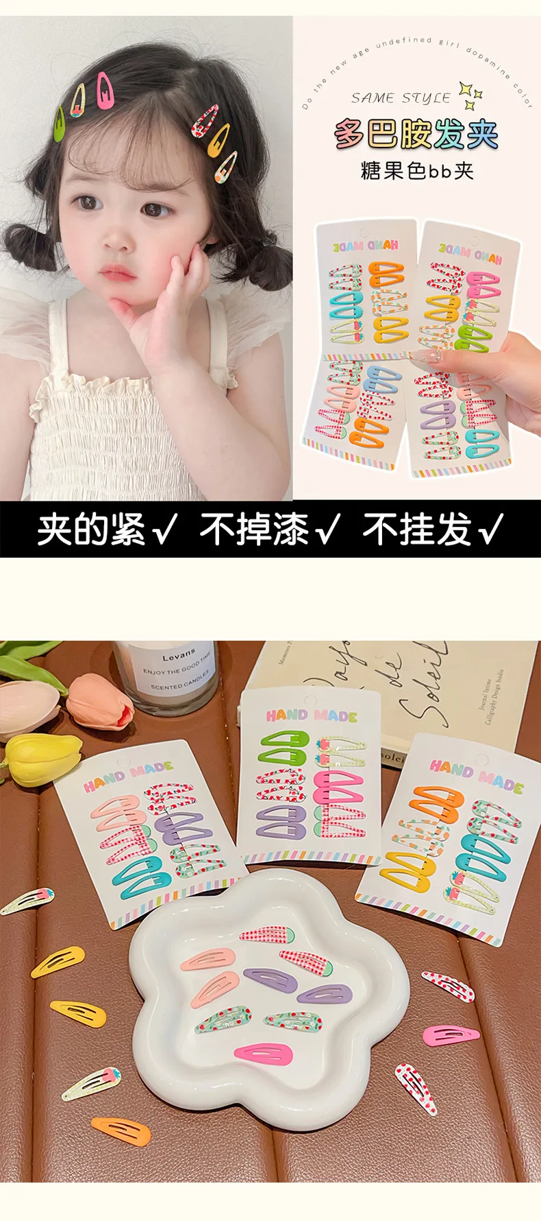 6/12 Uds. Clips laterales para el cabello con forma de gota de agua para niños, pasadores de aleación dulces para niñas, horquillas, accesorios para el cabello para niños