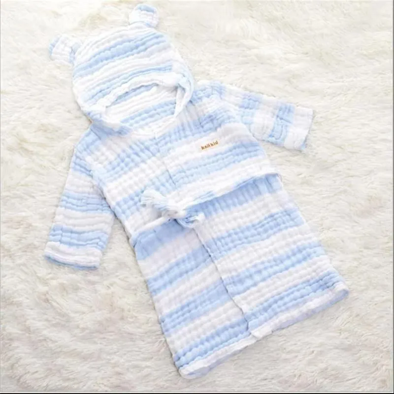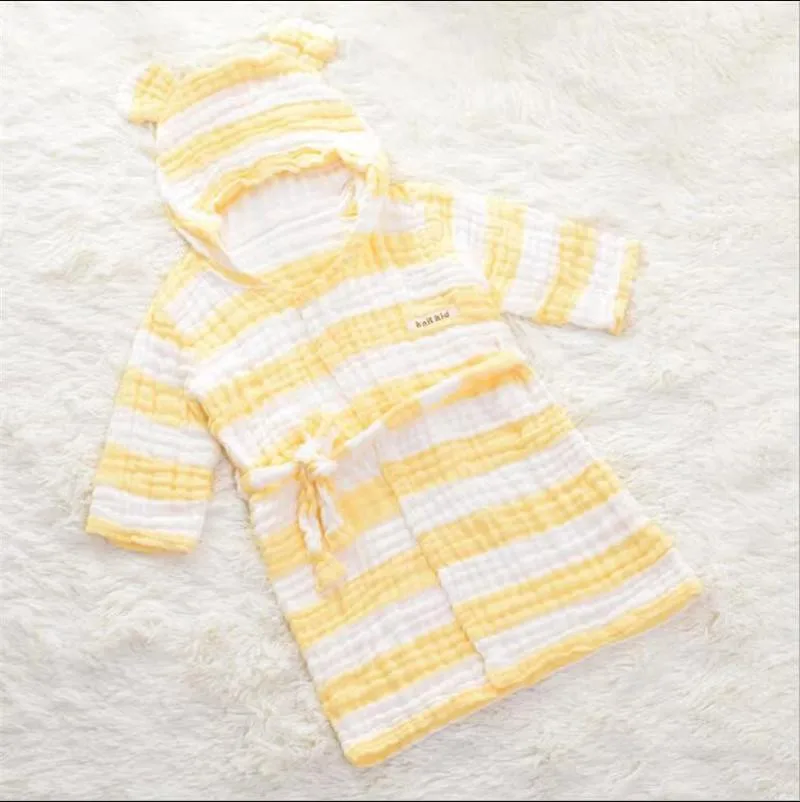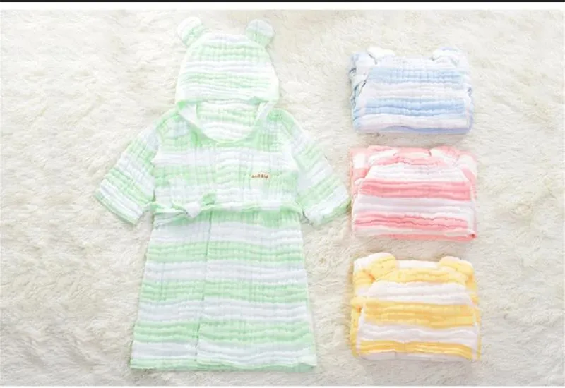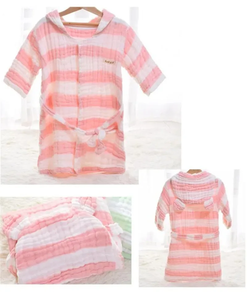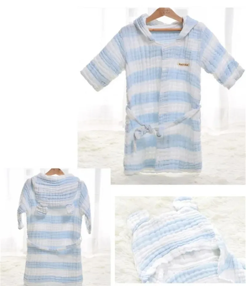 6 레이어 모슬린 어린이 가운 거즈 아기 긴 소매 후드 목욕 가운 어린이 목욕 타월 사랑스러운 귀 어린이 소년 소녀 가운 옷