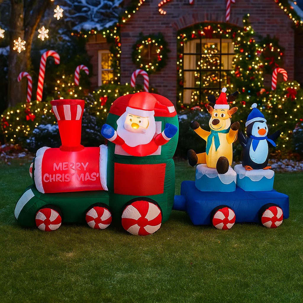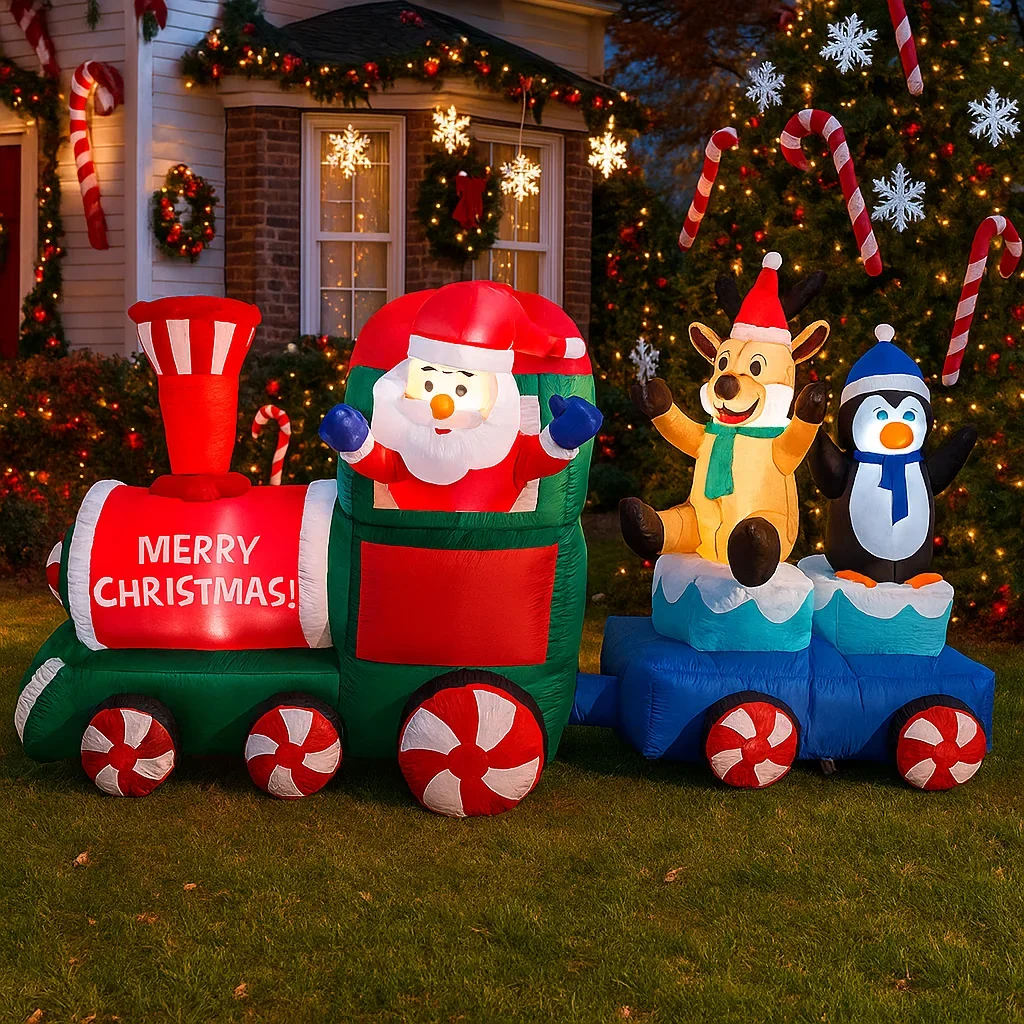 6,8 pies decoración navideña al aire libre Reno Santa Claus pingüino tren luces inflables decoración navideña hogar patio adornos de Navidad