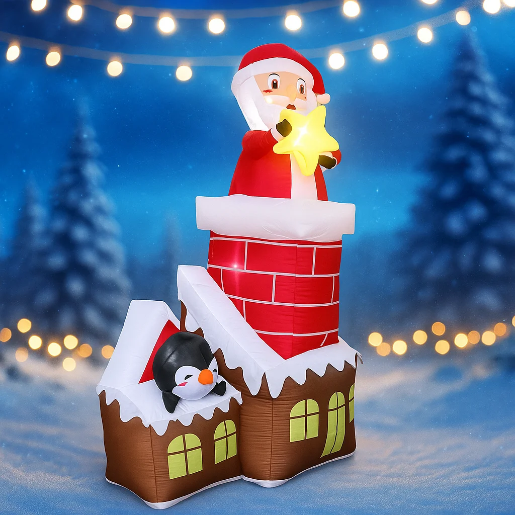 6,89 pies inflable Santa chimenea pingüino casa juguete decoración de Navidad para suministro de patio decoración del hogar ornamento festivo regalo de vacaciones