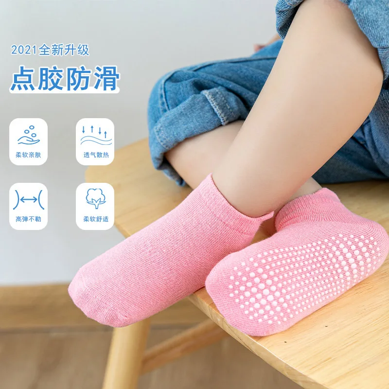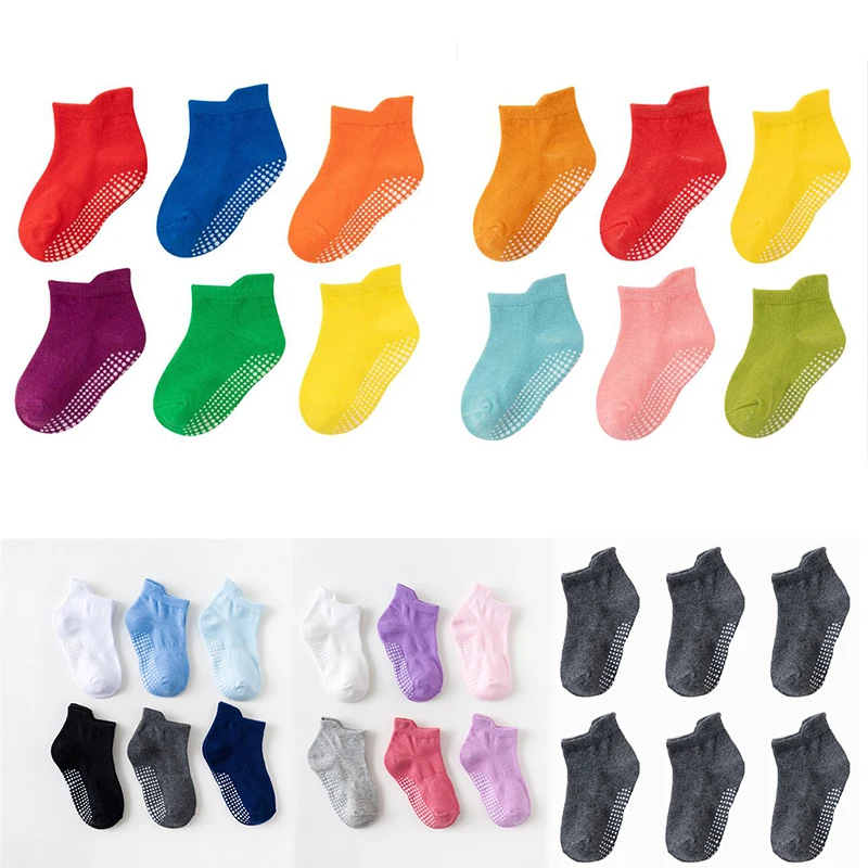 Comprar 6 par/lote de calcetines náuticos antideslizantes de algodón para niños de 0 a 6 años, calcetines de corte bajo para niños y niñas con empuñaduras de goma para las cuatro estaciones
