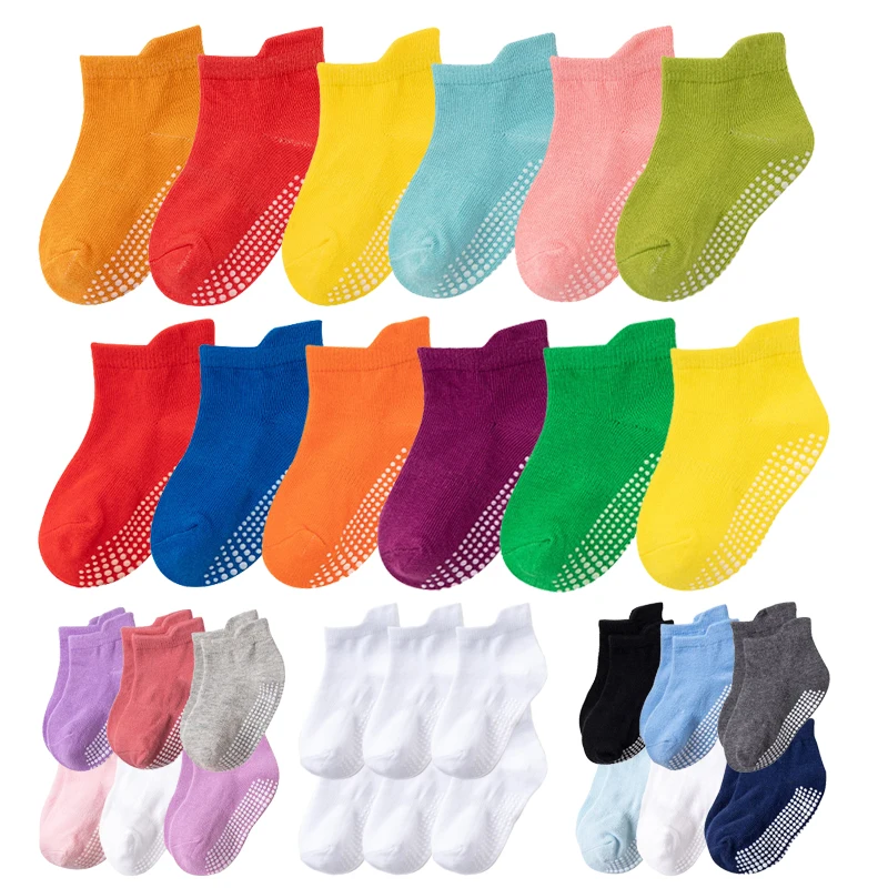 Comprar 6 par/lote de calcetines náuticos antideslizantes de algodón para niños de 0 a 6 años, calcetines de corte bajo para niños y niñas con empuñaduras de goma para las cuatro estaciones