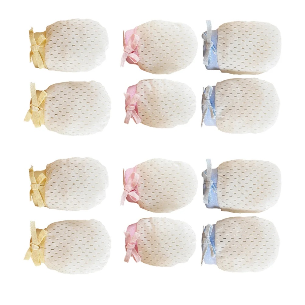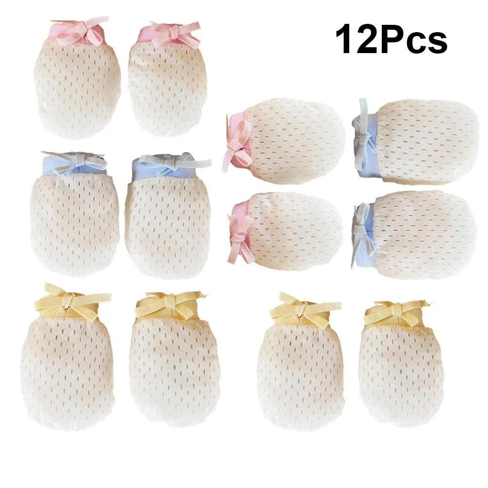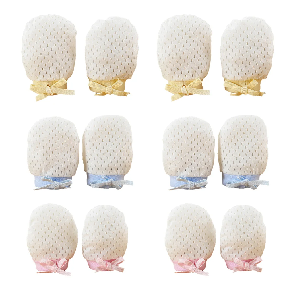 Guantes antiarañazos para bebé, Protector de manos de algodón transpirable para recién nacido, guantes para prevención de arañazos infantiles, 6 pares