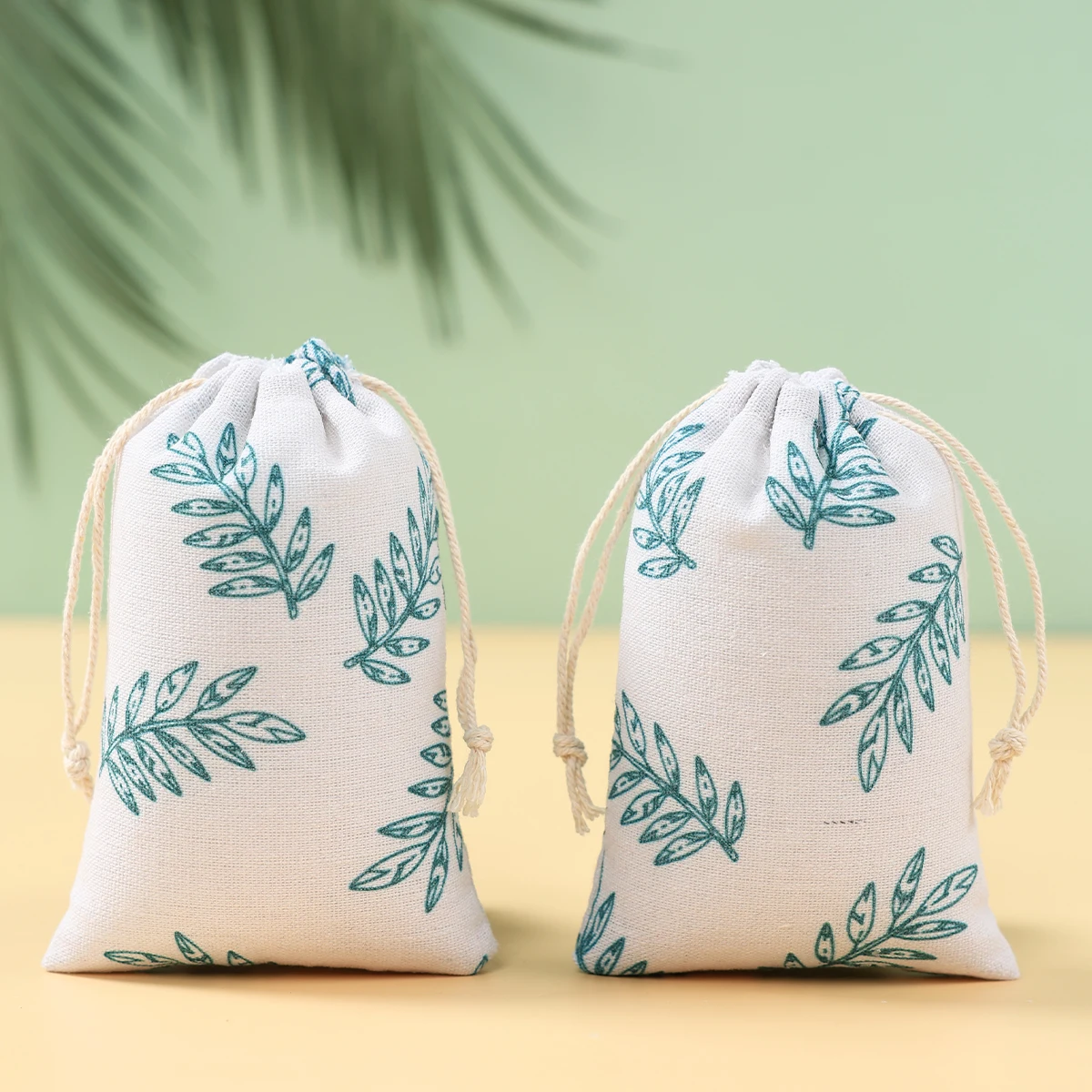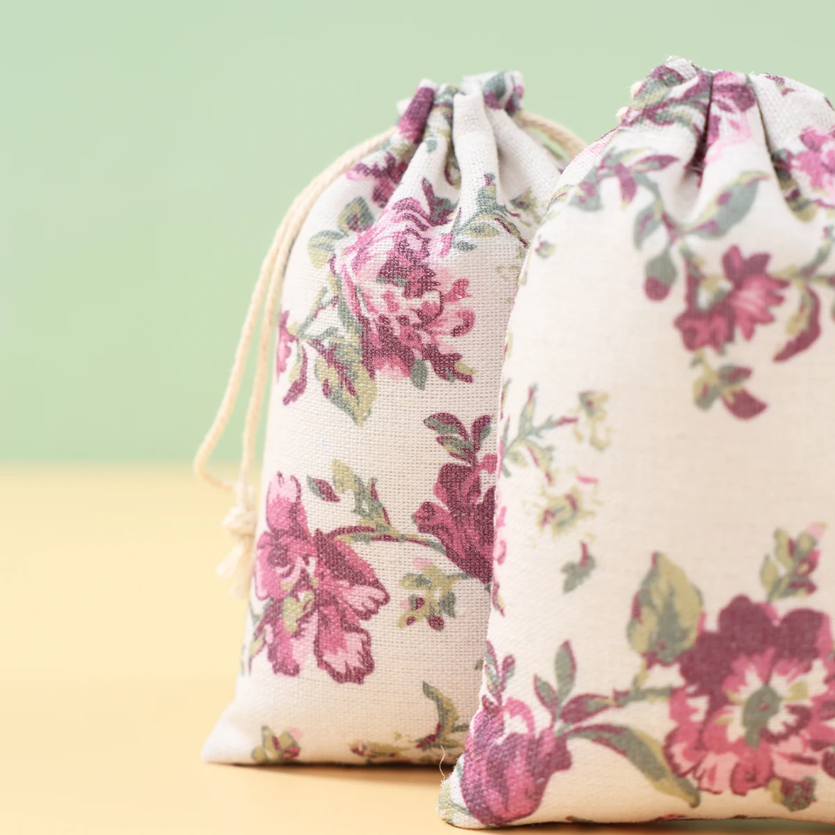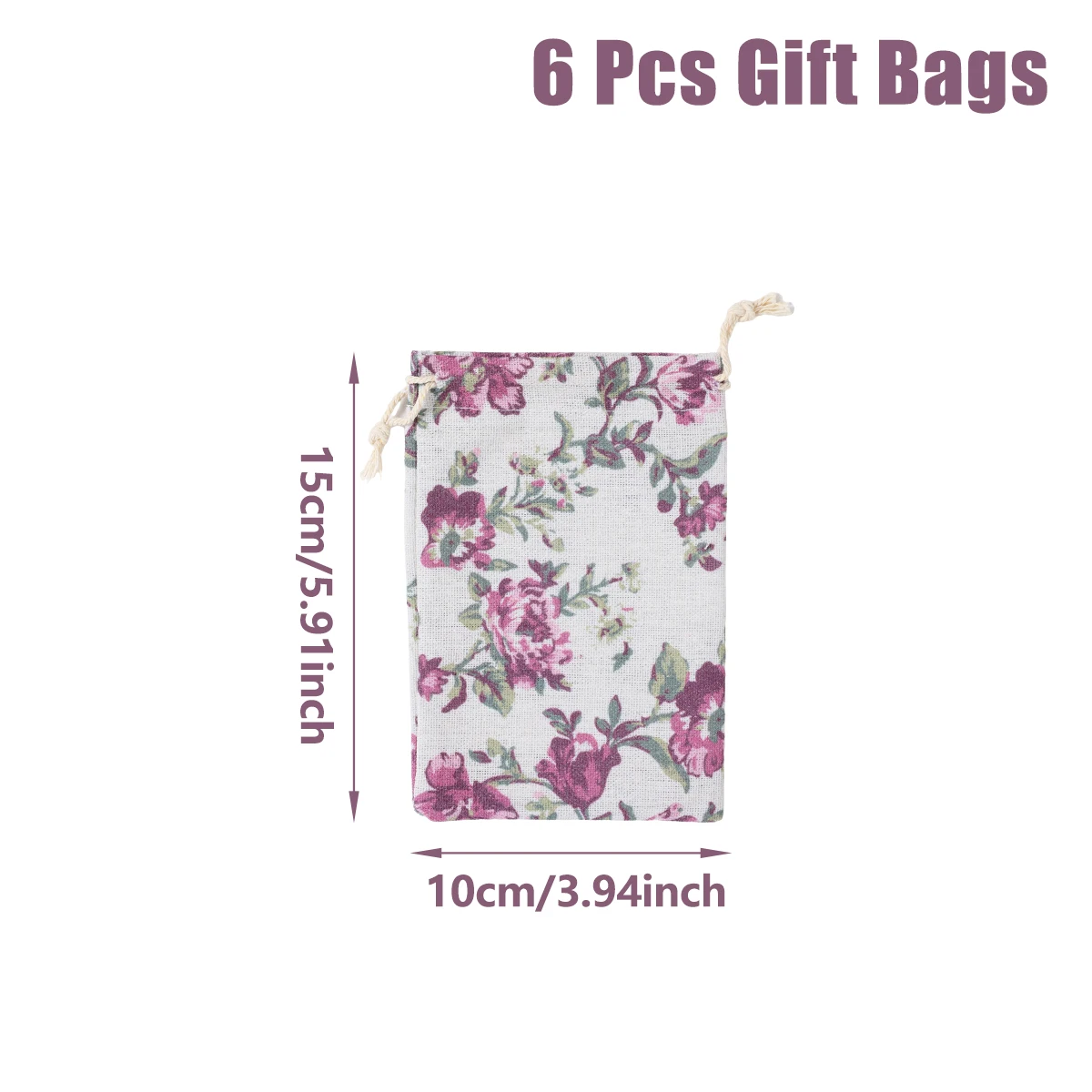 6 uds. Bolsas de regalo de yute de lino con flores moradas, bolsas con cordón, saco de algodón, bolsas de regalo para boda, fiesta de cumpleaños, regalos de navidad