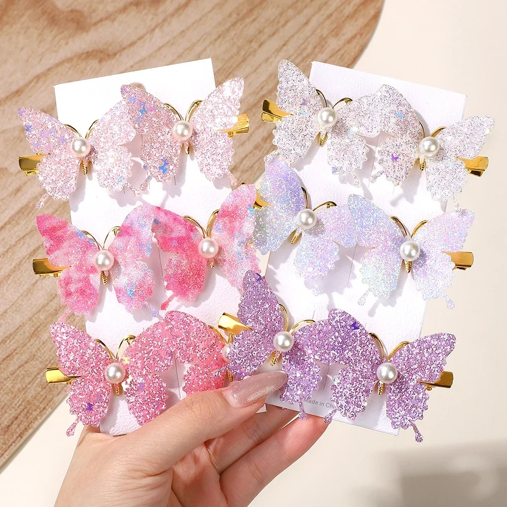 Comprar 6 uds estilo coreano lentejuelas mariposa Clip de pelo perla Metal arco pelo flequillo horquillas mujeres chica accesorios para el cabello de moda