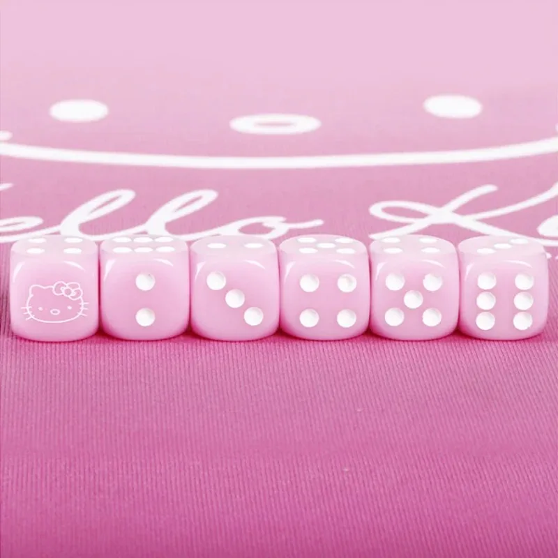 Comprar 6 uds Sanrio Hellokitty dados 14mm seis caras juegos dados patrón de dibujos animados lindo rosa acrílico dados para mesa juegos de mesa fiesta
