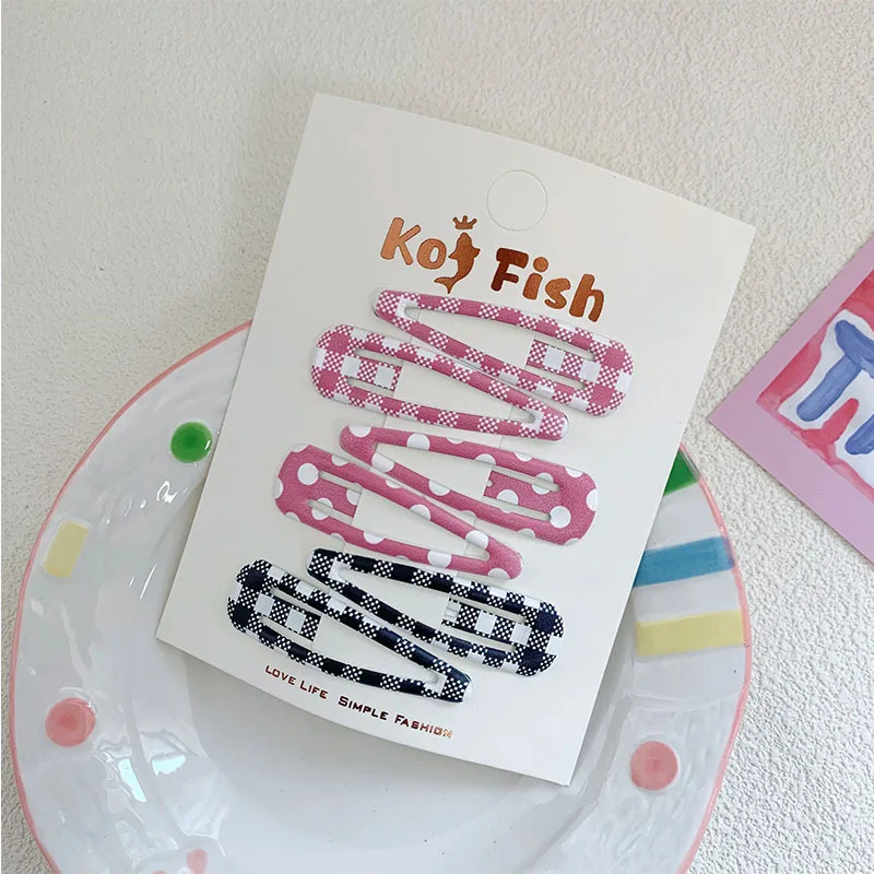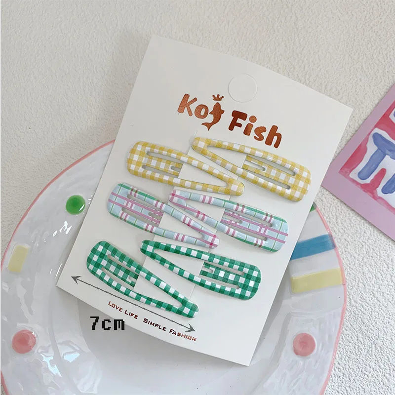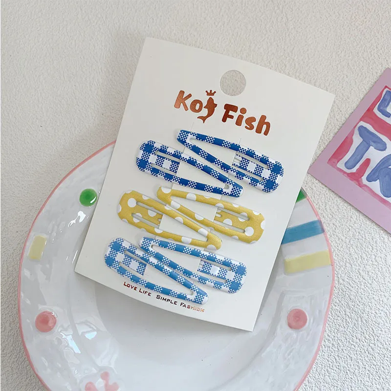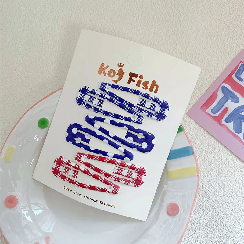6 unids/bolsa de pinza para el pelo a cuadros de lunares, flequillo colorido para niñas, Clip LATERAL, pinza para el pelo rota para niños, tocado para peinar el cabello