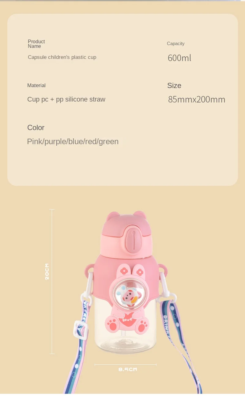 Categoría del producto: vaso de plásticoTipo de producto: taza de pajaEstilo: dibujos animadosFunción: cubierta emergente con un clic