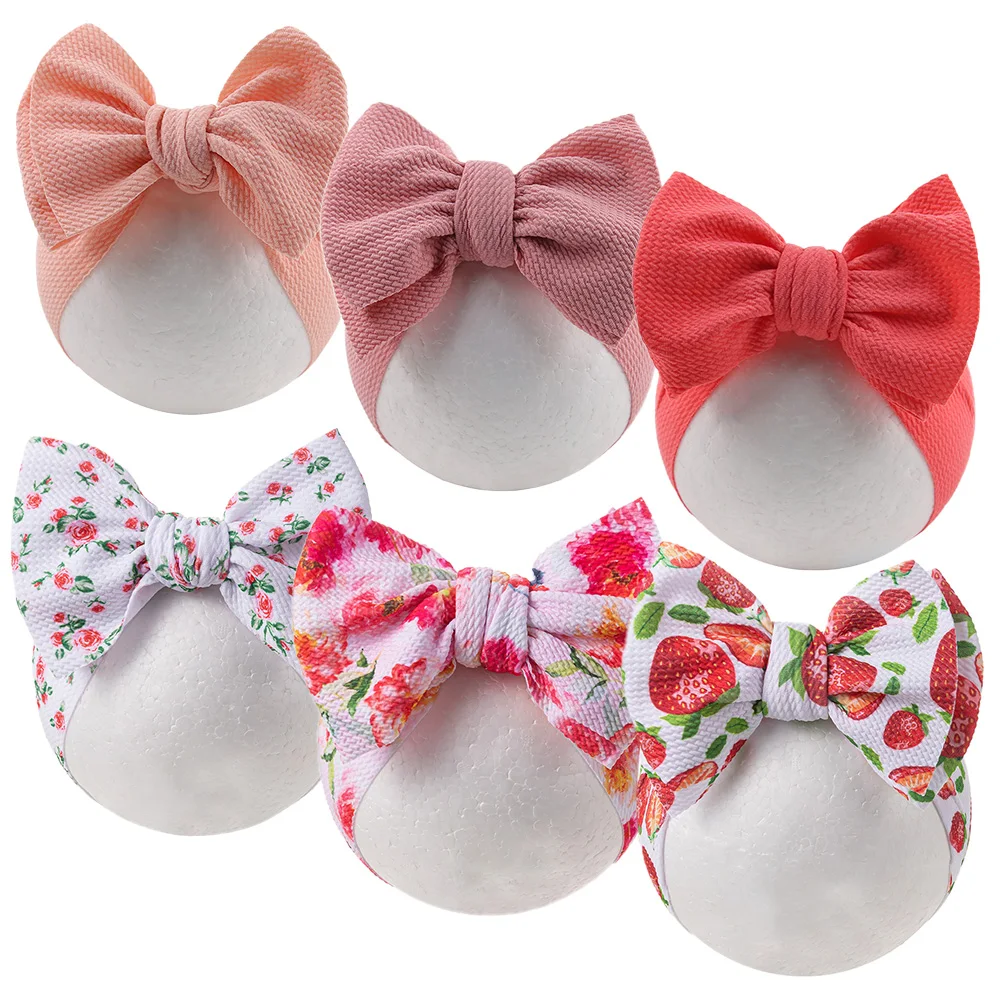6Pcs/Lot Strawberry Flower Pirnt Bullet Baby Headbands Fabric Lemon Rainbow Girls Hairbands Newborn Boys Kids Turban Headwraps