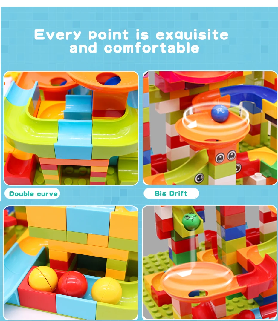 Comprar 74-404 Uds. Bloque de carrera de mármol, bloques de construcción de gran tamaño, tobogán de embudo de plástico, montaje DIY, ladrillos, juguetes educativos para niños