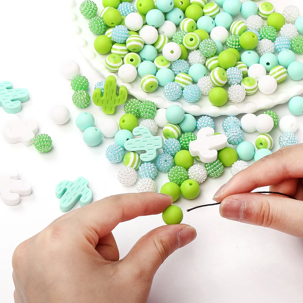 Comprar 76 Uds. Cuentas redondas de silicona de 12mm de calidad alimentaria, cuentas focales de Cactus para DIY, mordedor para bebé, chupete, cadena para pezones, juguete para masticar, Clips para chupetes
