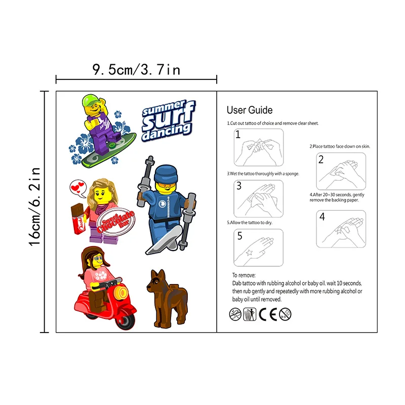 Las pegatinas de tatuajes temporales Building Block incluyen 8 hojas en total.